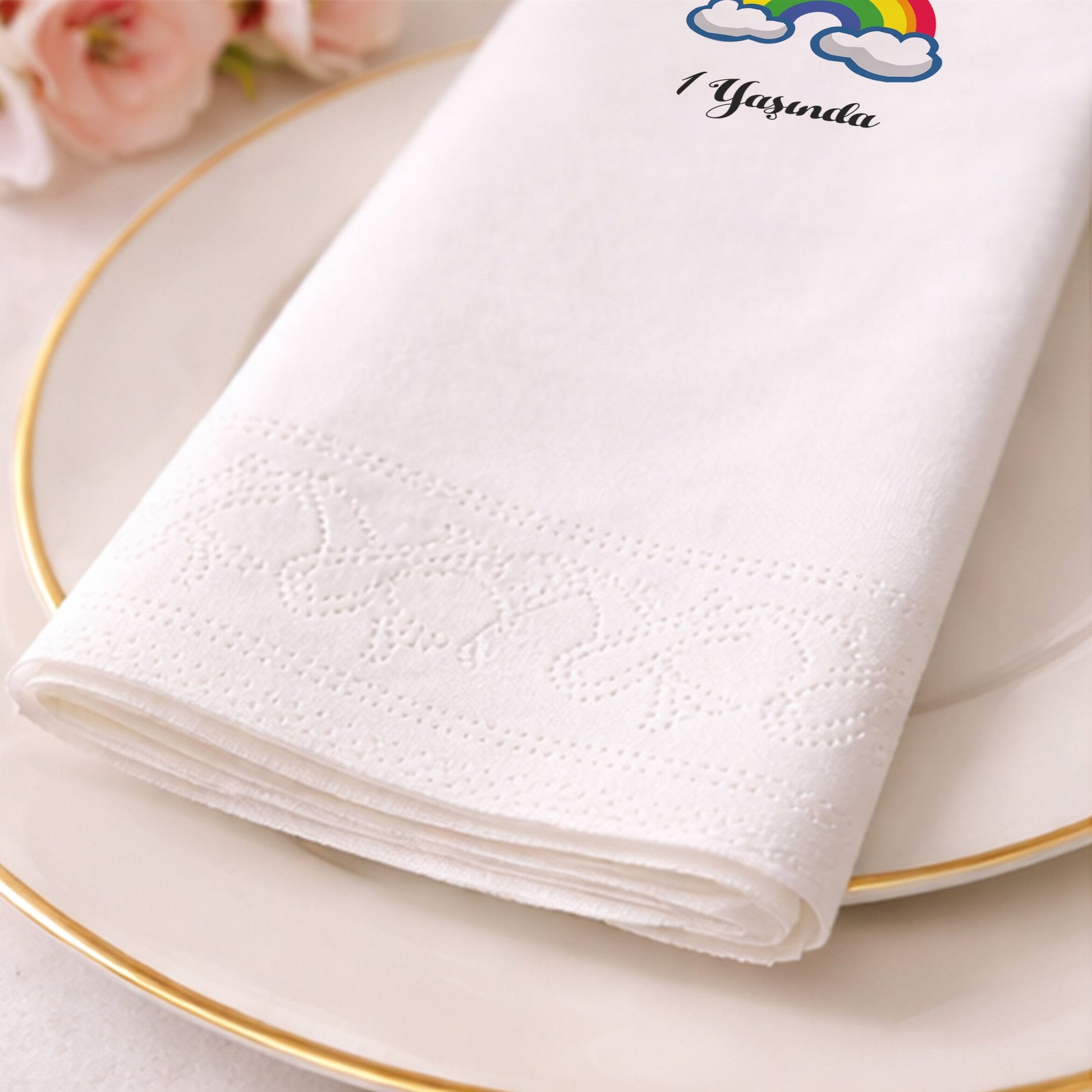 1 Yaşında Gökkuşağı Temalı İlk Yaş Kutlama Peçetesi