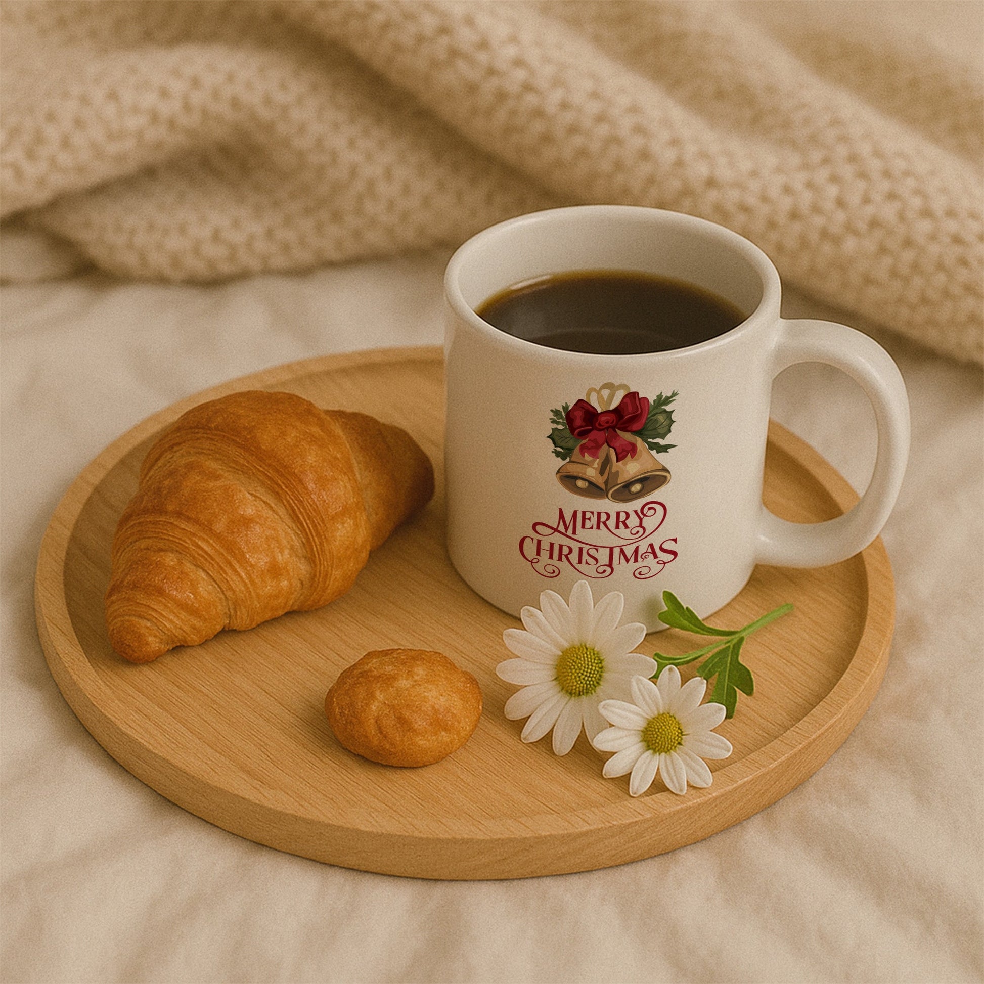 Bu özel tasarım kupa, Noel’in en zarif sembollerinden altın çanları ve klasik Merry Christmas yazısını bir araya getirir. Kırmızı kurdele ve yeşil yaprak detayları, tasarıma sıcak ve nostaljik bir yılbaşı havası kazandırır.