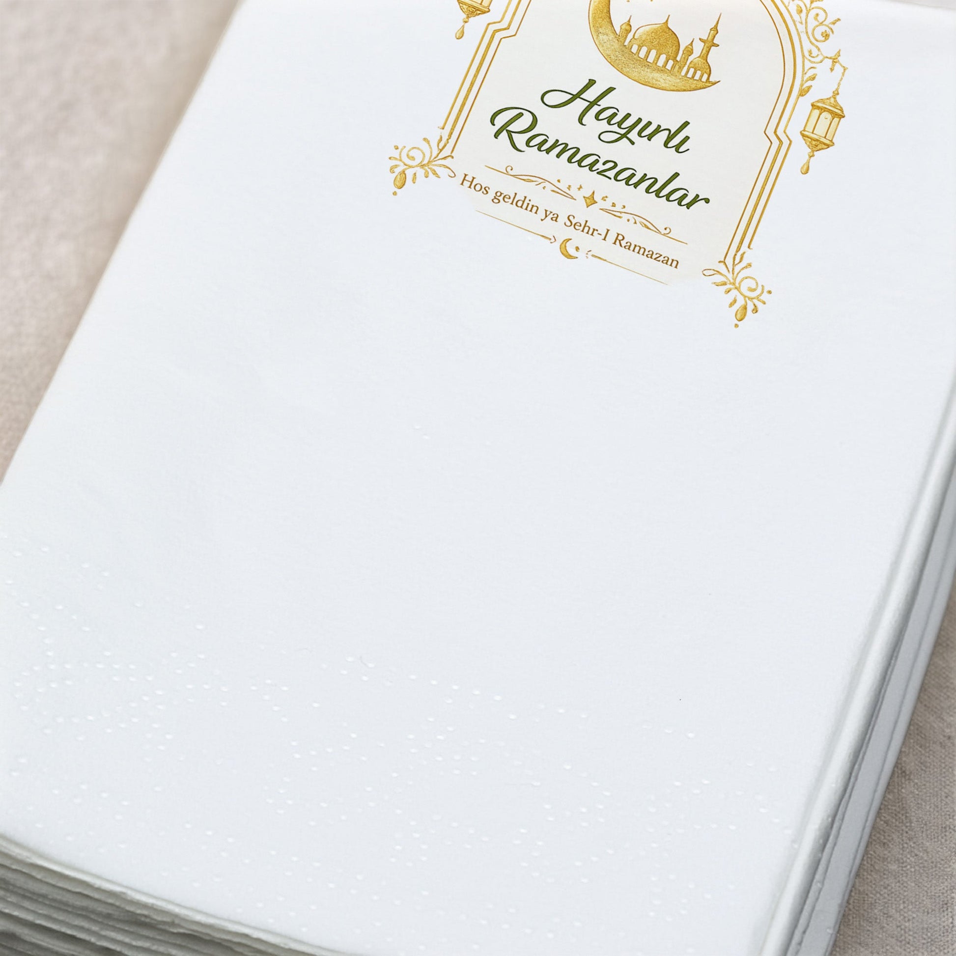Altın Kemer Desenli Ramazan Peçetesi – Hayırlı Ramazanlar | 33x33 cm