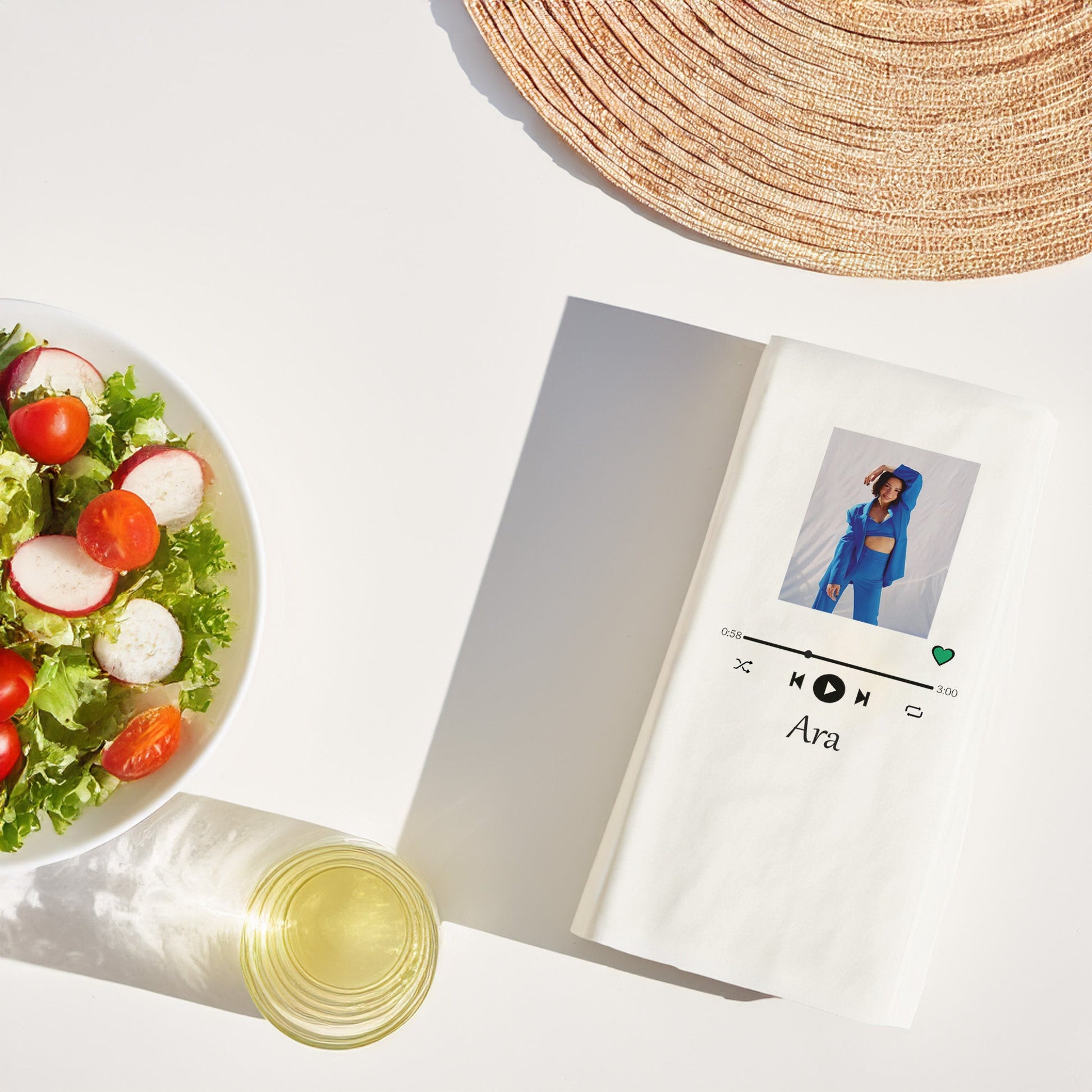 Modern sofralara şıklık katan Ara şarkı temalı özel baskılı peçete, müzikseverlere özel tasarımıyla dikkat çeker.