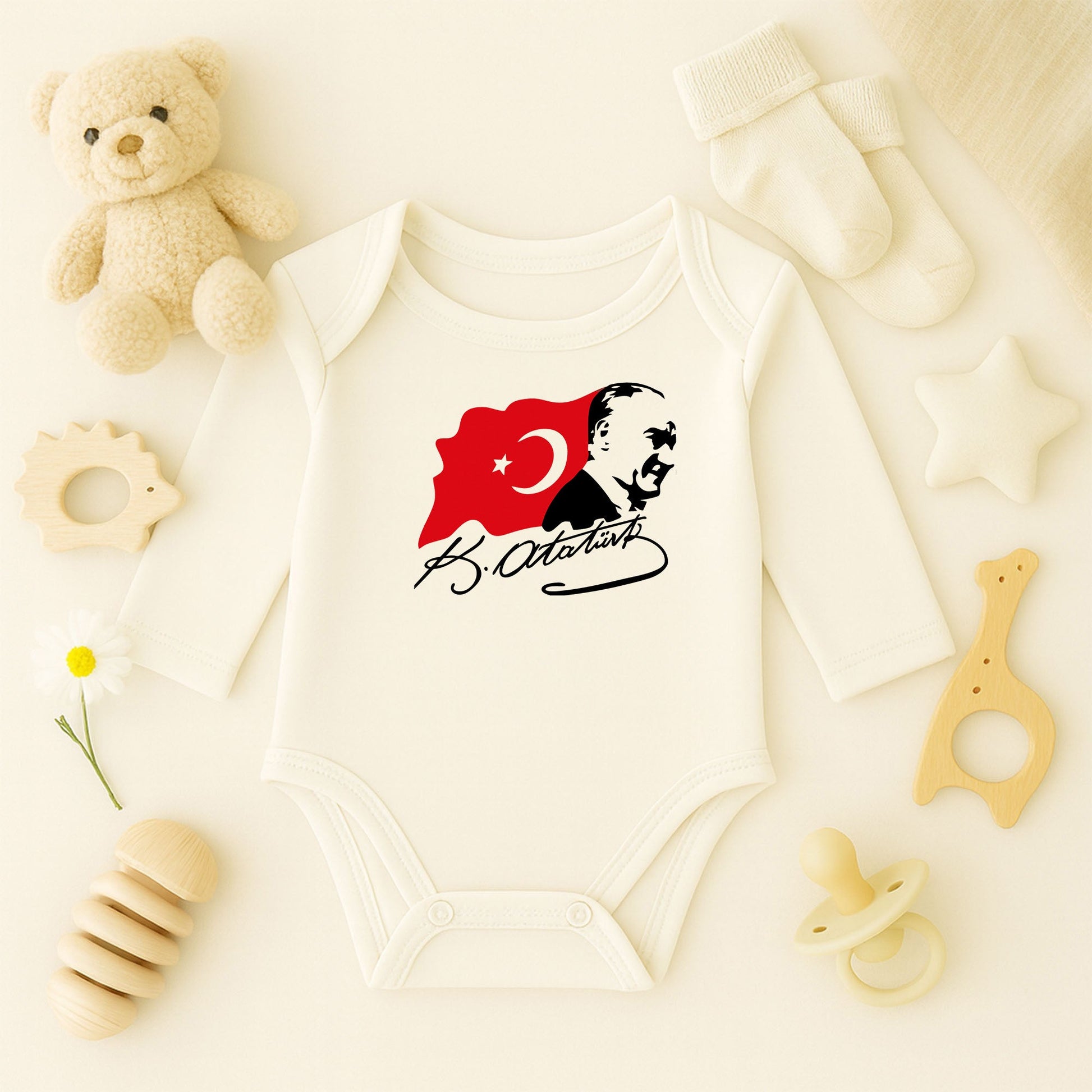 Atatürk Silüeti & Türk Bayrağı Bebek Zıbını | 1–36 Ay
