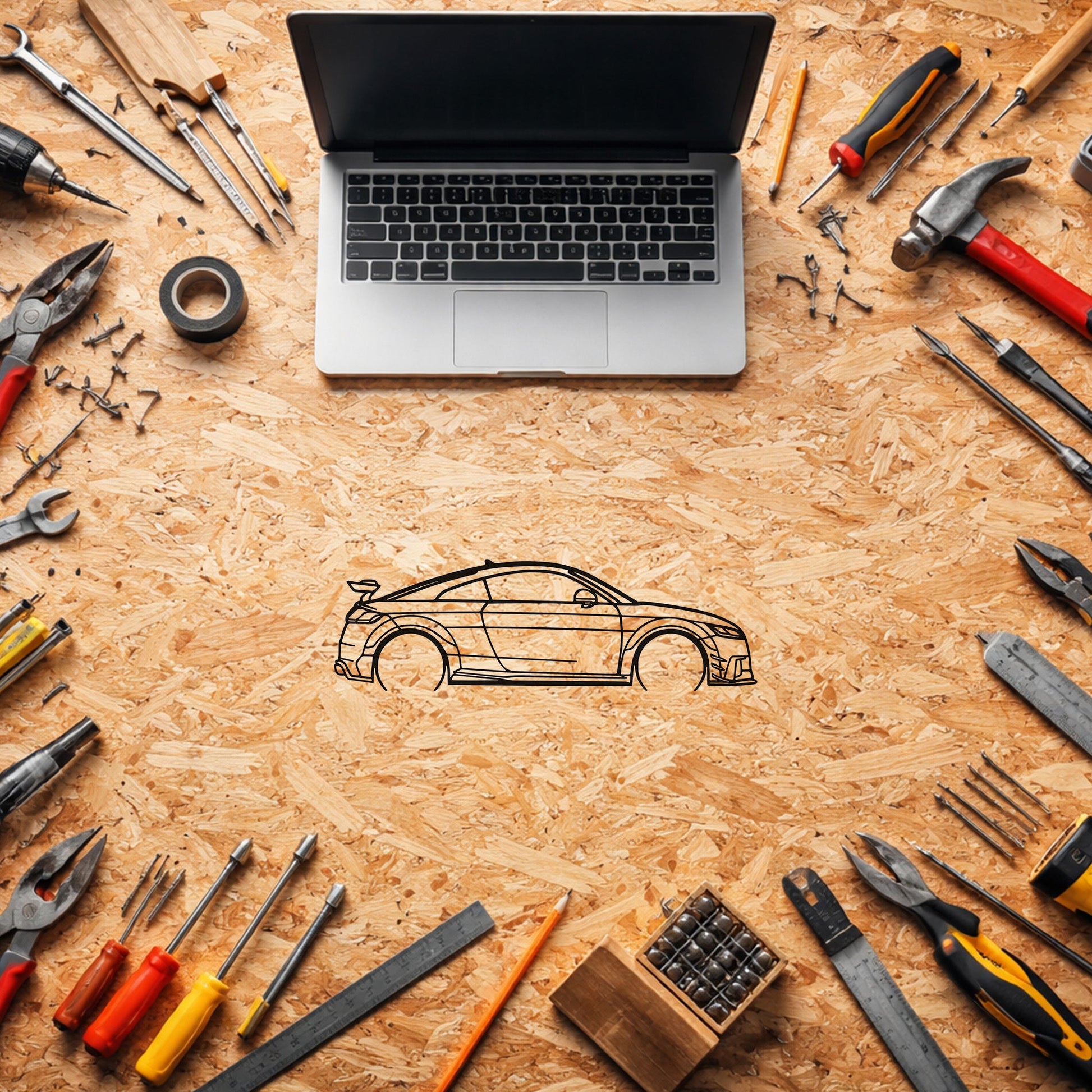 Audi TT metal duvar tablosu, lazer kesim detaylara sahip metal tasarımı ve elektrostatik siyah boya kaplaması ile net ve temiz bir görünüm sunar. Minimal çizgileri sayesinde bulunduğu ortama kolayca uyum sağlar ve dekorasyonu yormadan tamamlar. Hafif yapısı sayesinde duvara kolayca monte edilebilir ve iç mekân kullanımında bakım gerektirmeden uzun süre estetik görünümünü korur. Keskin hatlarla oluşturulan siluet, aracın ikonik ve sportif karakterini güçlü biçimde yansıtır.