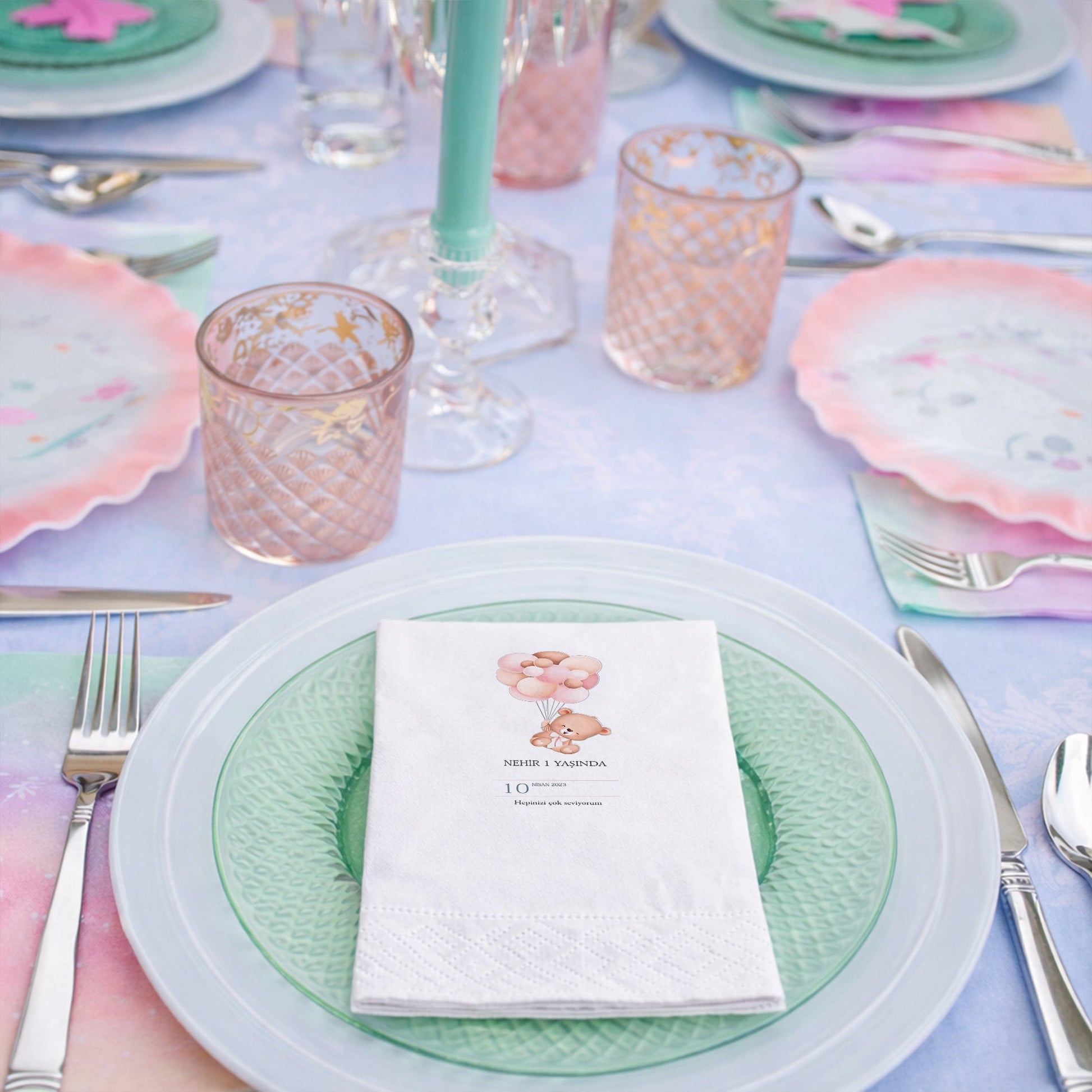 Balonlu Ayıcık Temalı Kız Bebek 1 Yaş Peçetesi