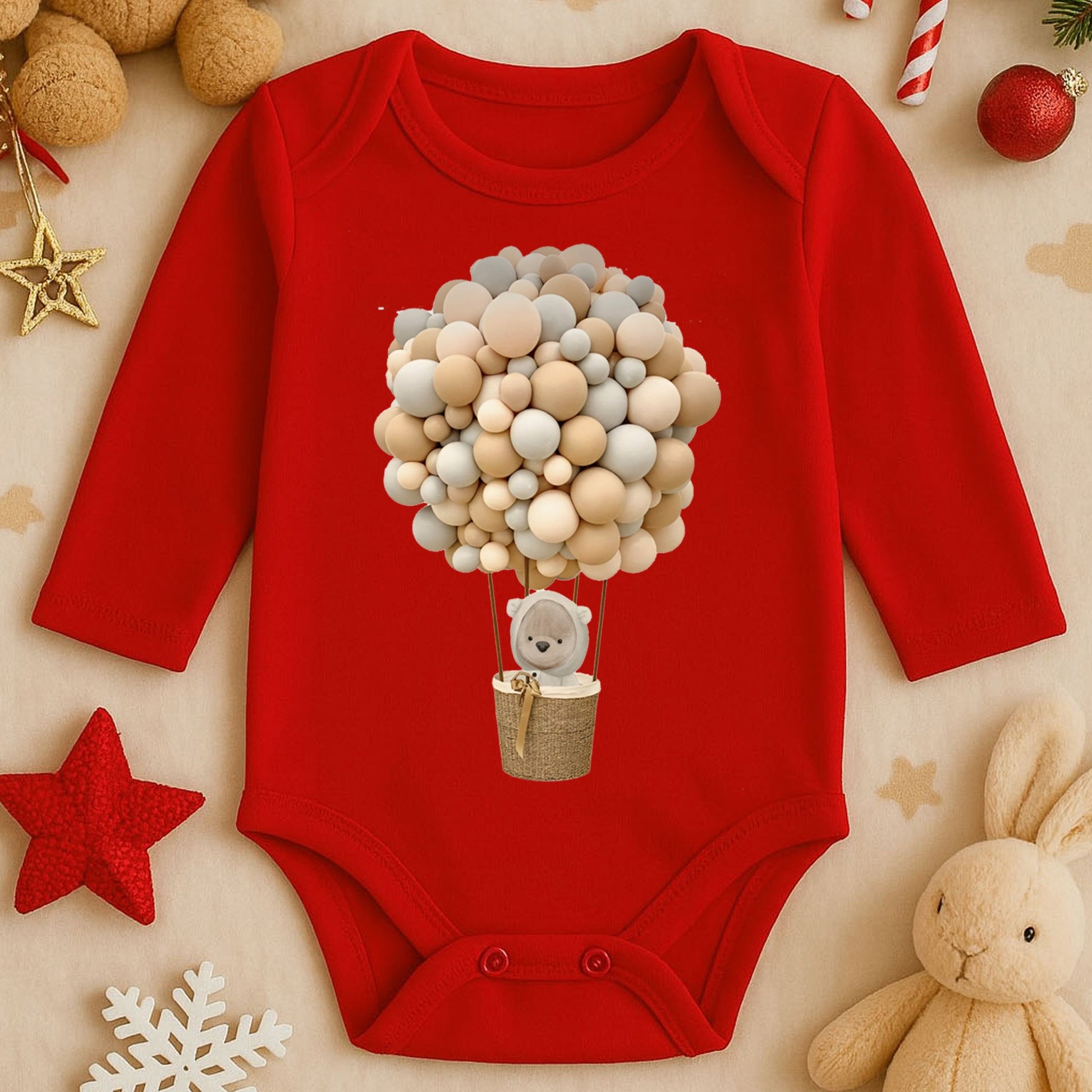 Balon Buketi & Ayıcık Sepet Tasarımlı Bebek Zıbını | 1–36 Ay | Nötr Ton Butik Model
