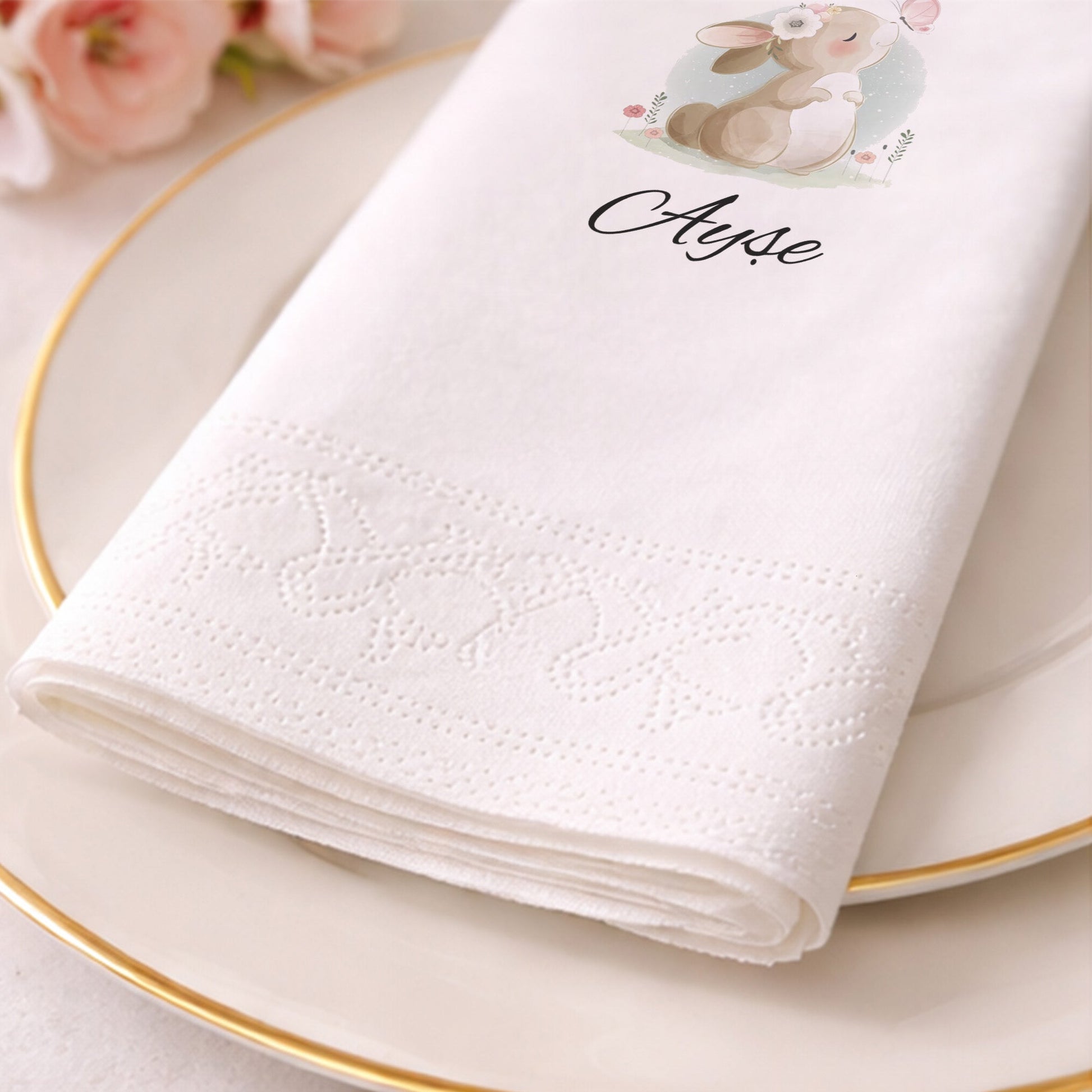Balon demetiyle tasarlanan ayıcık illüstrasyonu, bu özel gün peçetesini bebek doğum günü ve yenidoğan kutlamaları için sevimli bir tamamlayıcı haline getirir. Kişiye özel isim eklenerek hazırlanan tasarım, misafirlerinize özenli bir sunum yapmanızı sağlar. Pastel mavi ve beyaz tonları, sade ve ferah bir masa düzeni oluşturur. Çift katlı yapısı sayesinde dayanıklı ve yumuşaktır. Gıda temasına uygun baskı ile üretilmiştir. Baby shower, diş buğdayı ve 1 yaş organizasyonlarında güvenle kullanılabilir. Şık ve zamansız bir tasarımdır.