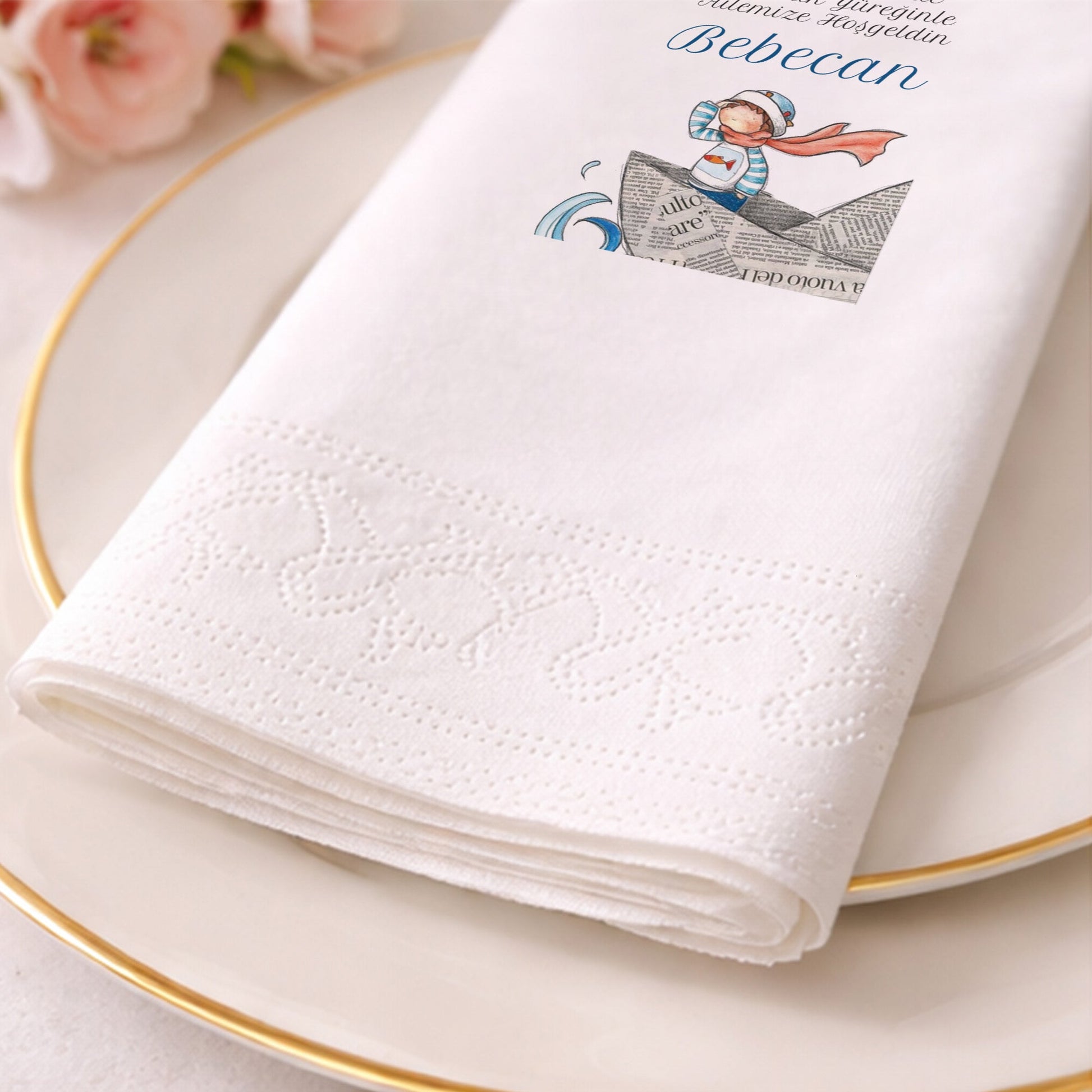 Gazete Kağıdı Kayıklı Denizci Bebecan Bebek Peçetesi