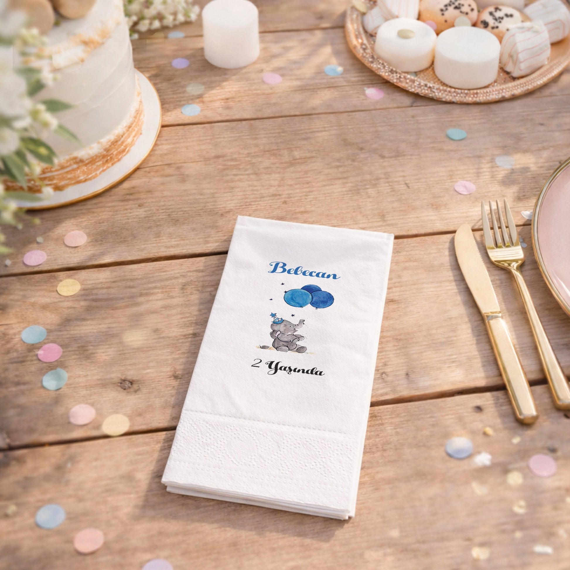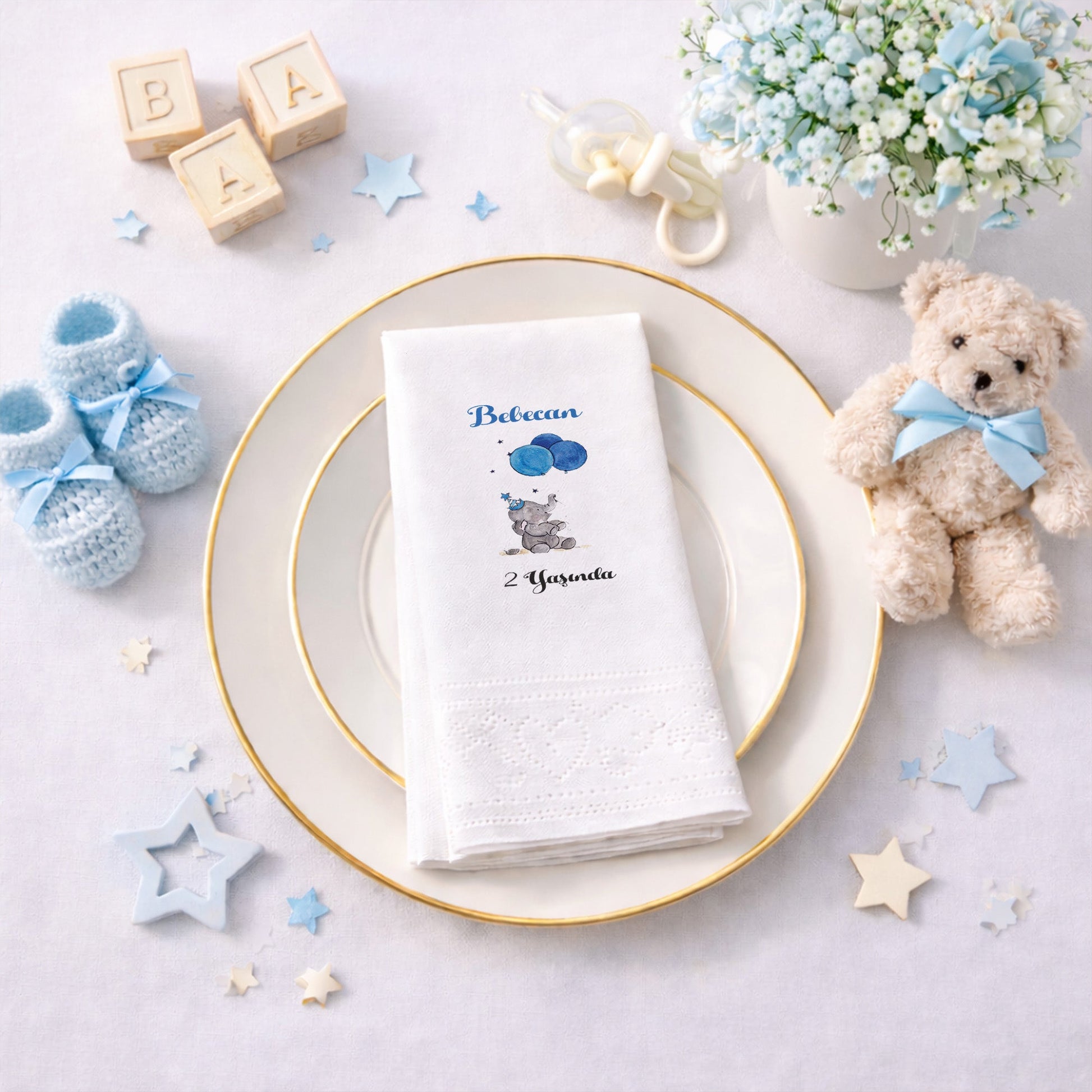 Mavi Balonlu Fil Figürlü Bebecan 2 Yaş Peçetesi