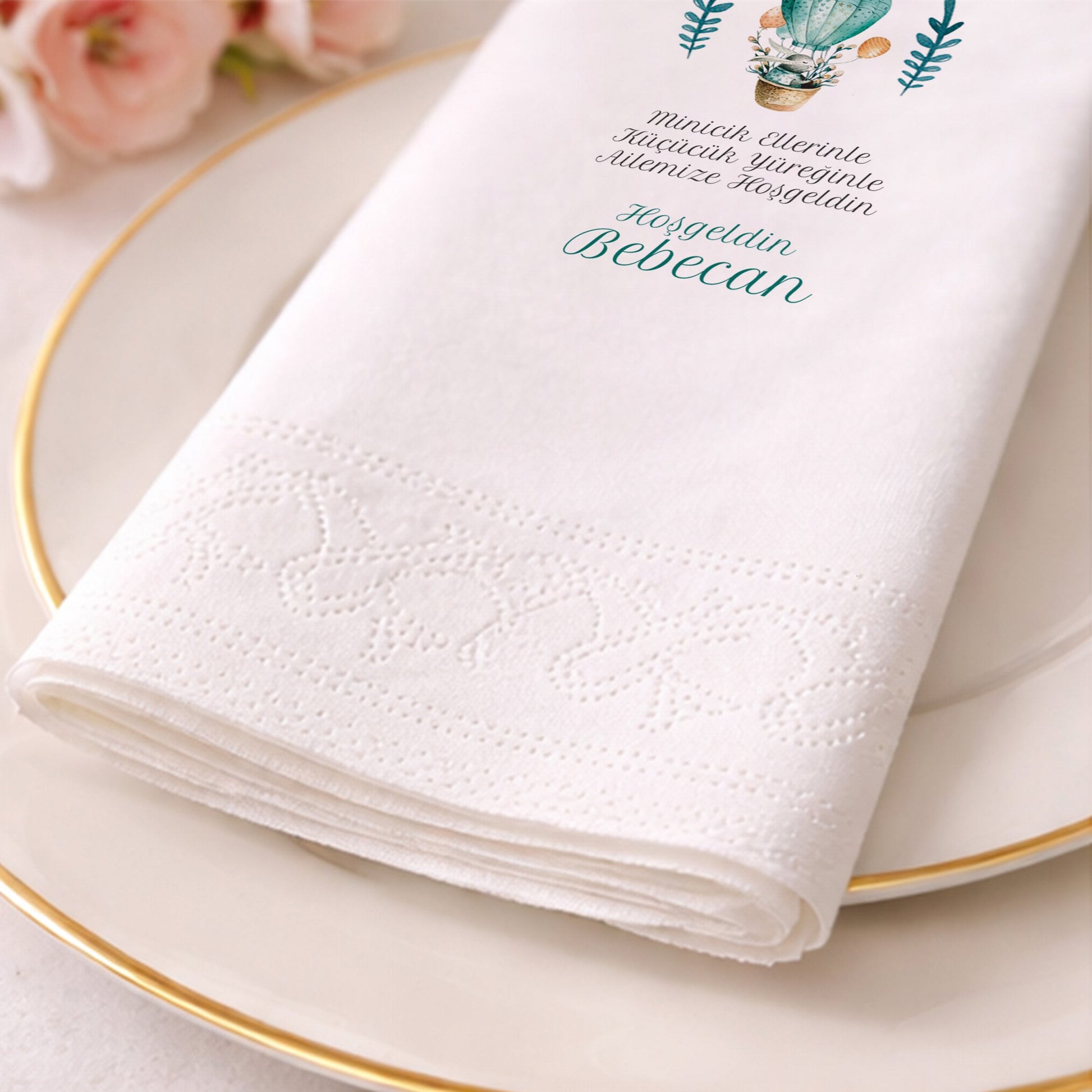 Tavşanlı Turkuaz Sıcak Hava Balonu Bebecan Peçetesi
