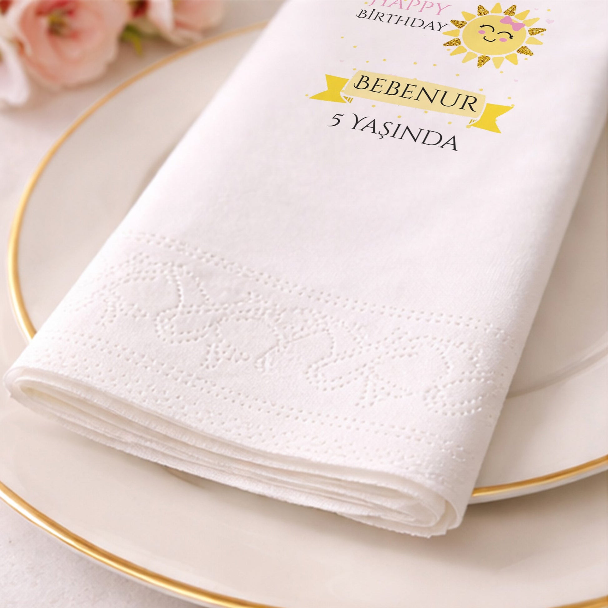 Bebenur 5 Yaş Gülen Güneş Desenli Eğlenceli Doğum Günü Peçetesi