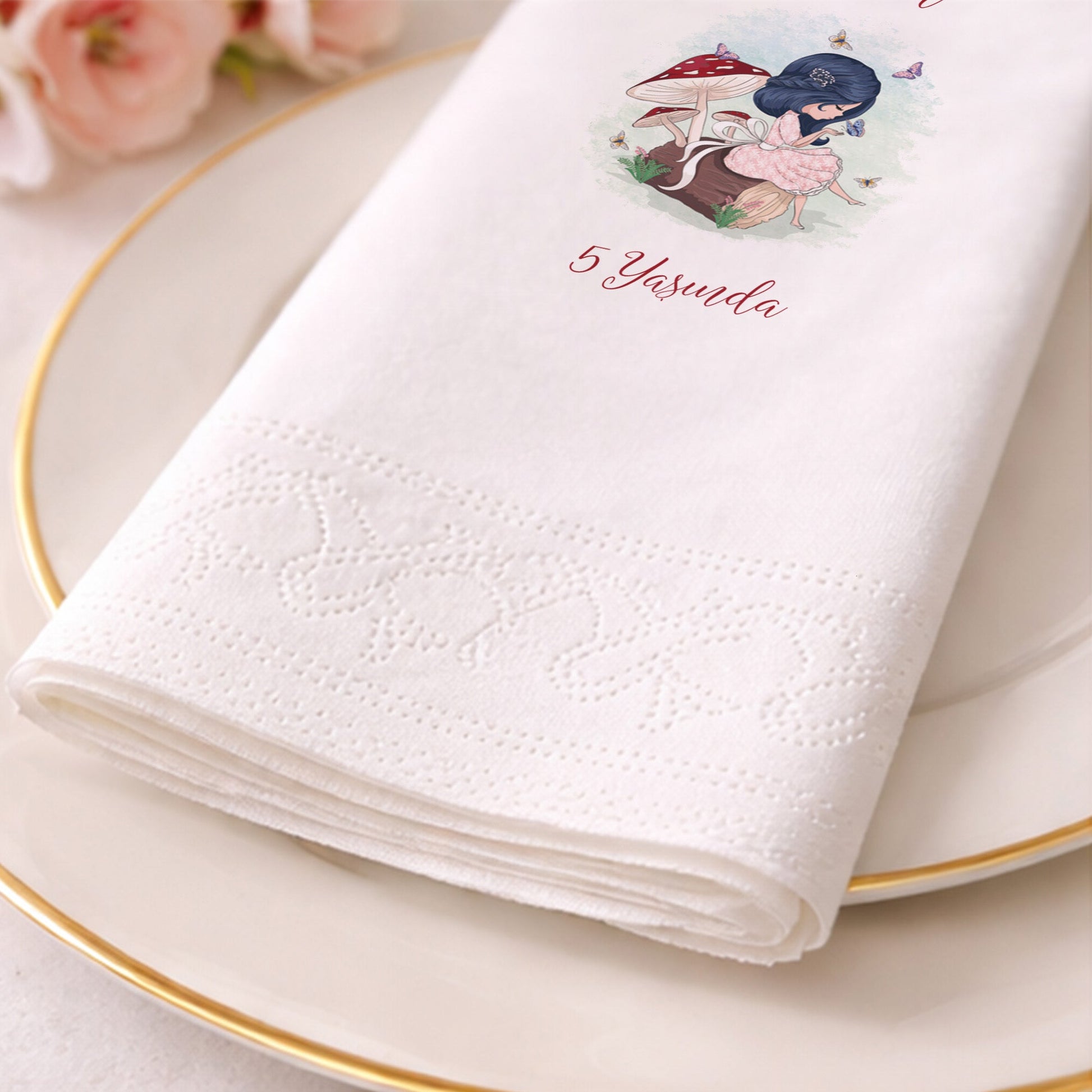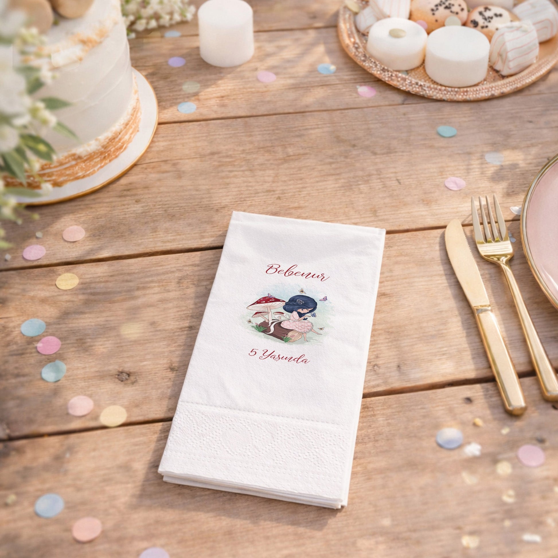 Bebenur 5 Yaş Mantar ve Kelebek Tasarımlı Kişiye Özel Peçete