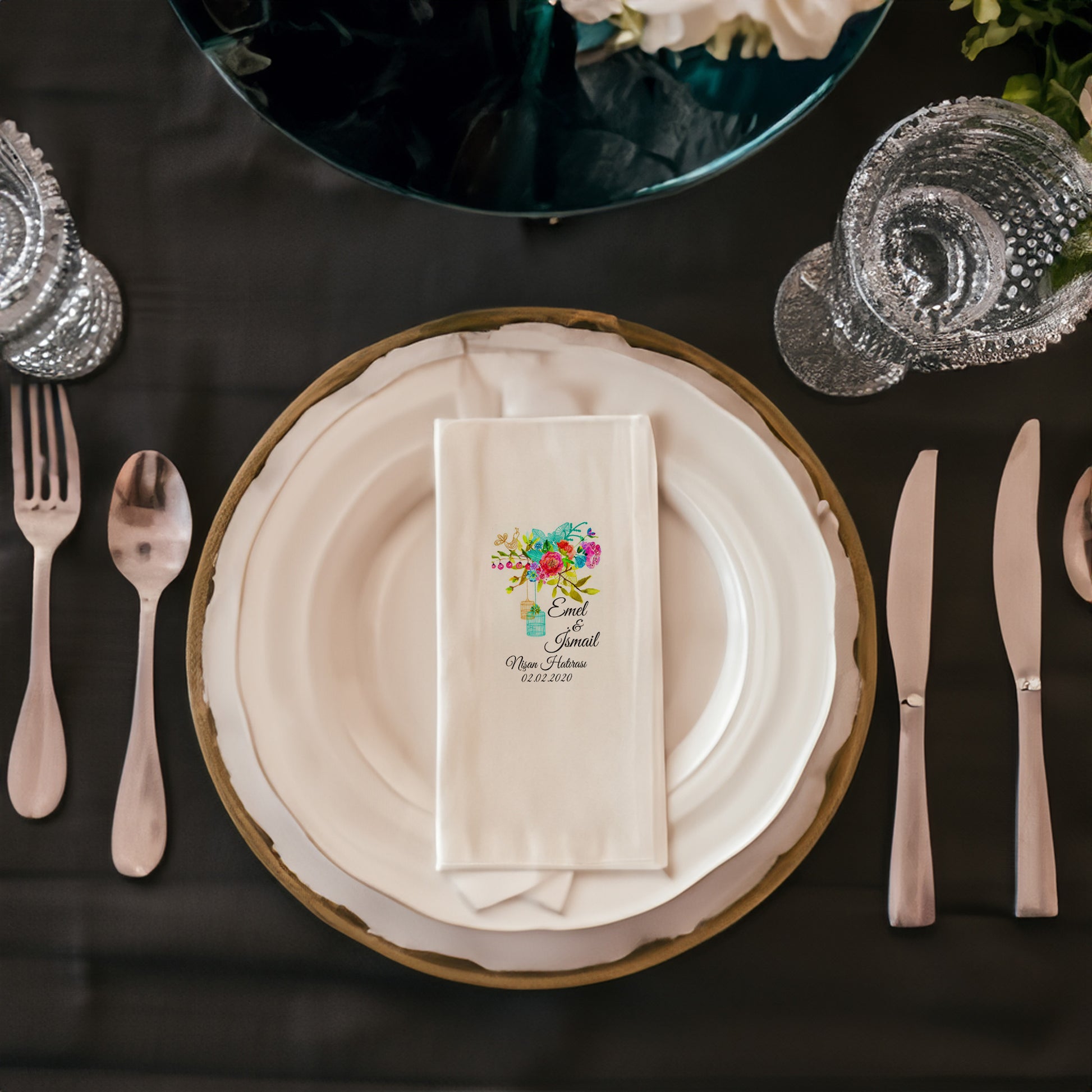 Özel günlerinizi unutulmaz kılacak zarif bir dokunuş: Çiçek Desenli Düğün, Nişan, Söz ve Kına Peçetesi Seti!