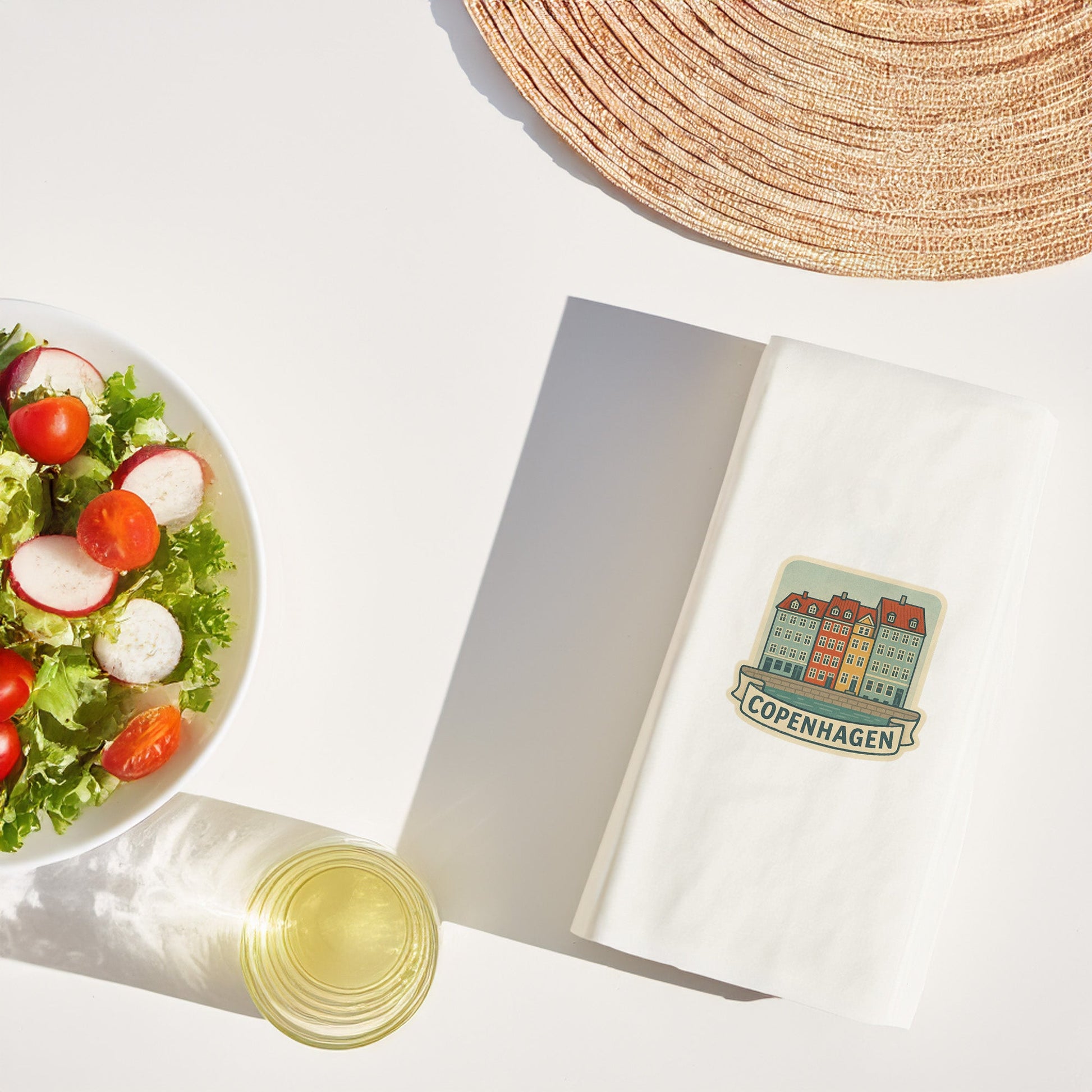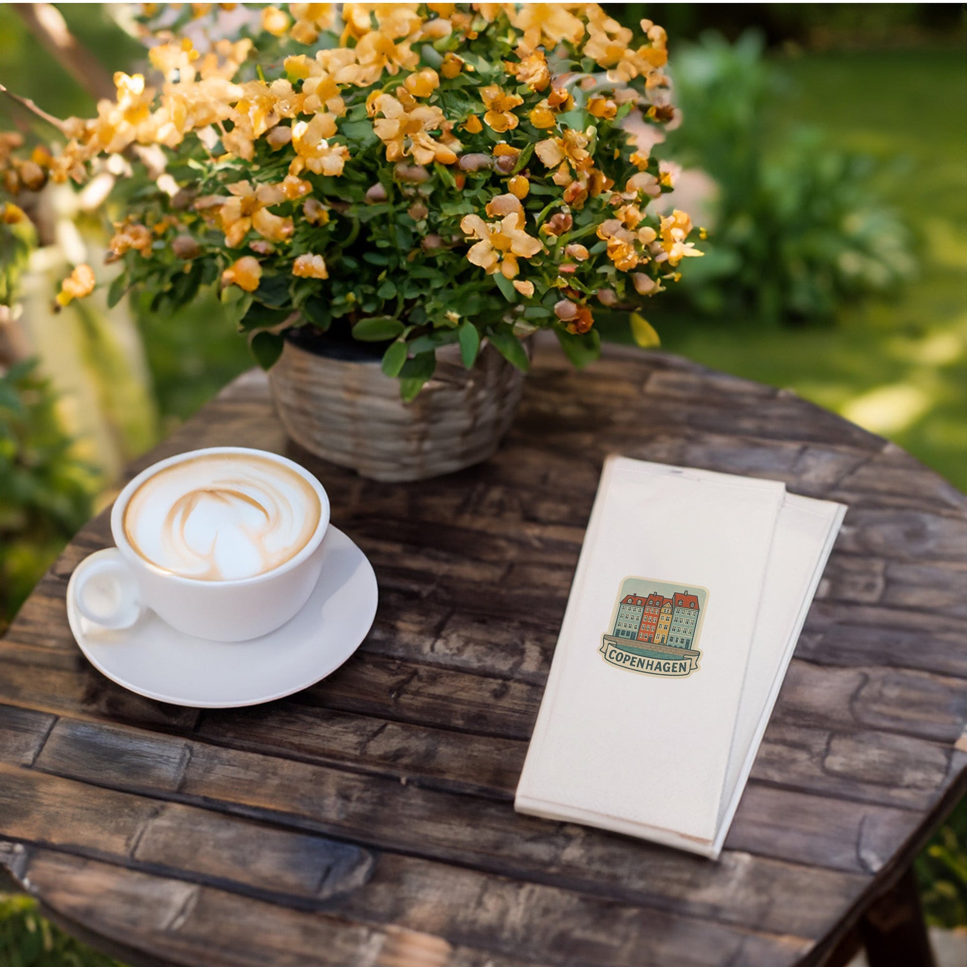 Copenhagen temalı bu özel tasarım peçete, sofralarda İskandinav sadeliğini ve şehir zarafetini bir araya getirir.