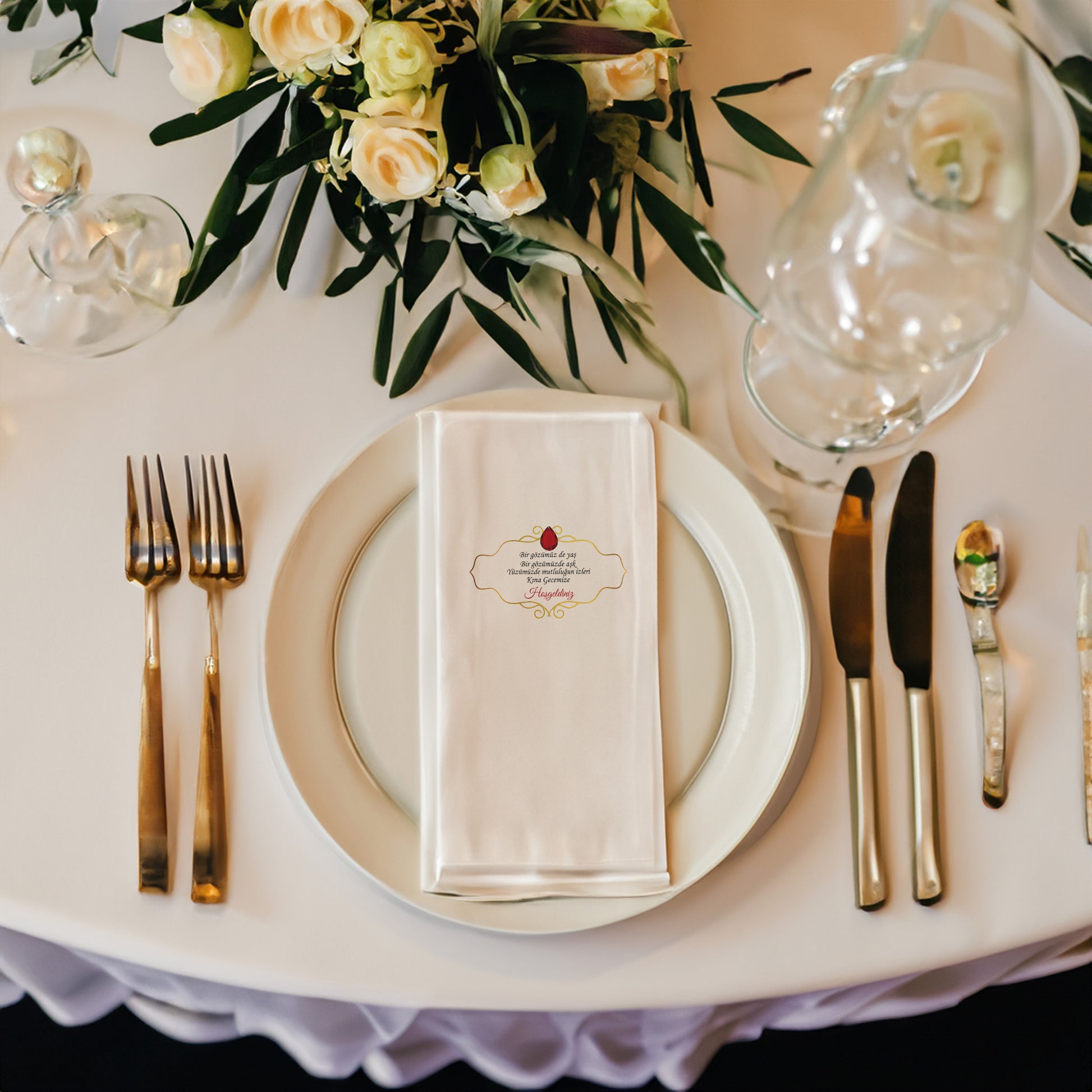 Özel günlerinizi unutulmaz kılacak zarif bir dokunuş: Elmas Detaylı Detaylı Düğün, Nişan, Söz ve Kına Peçetesi Seti!