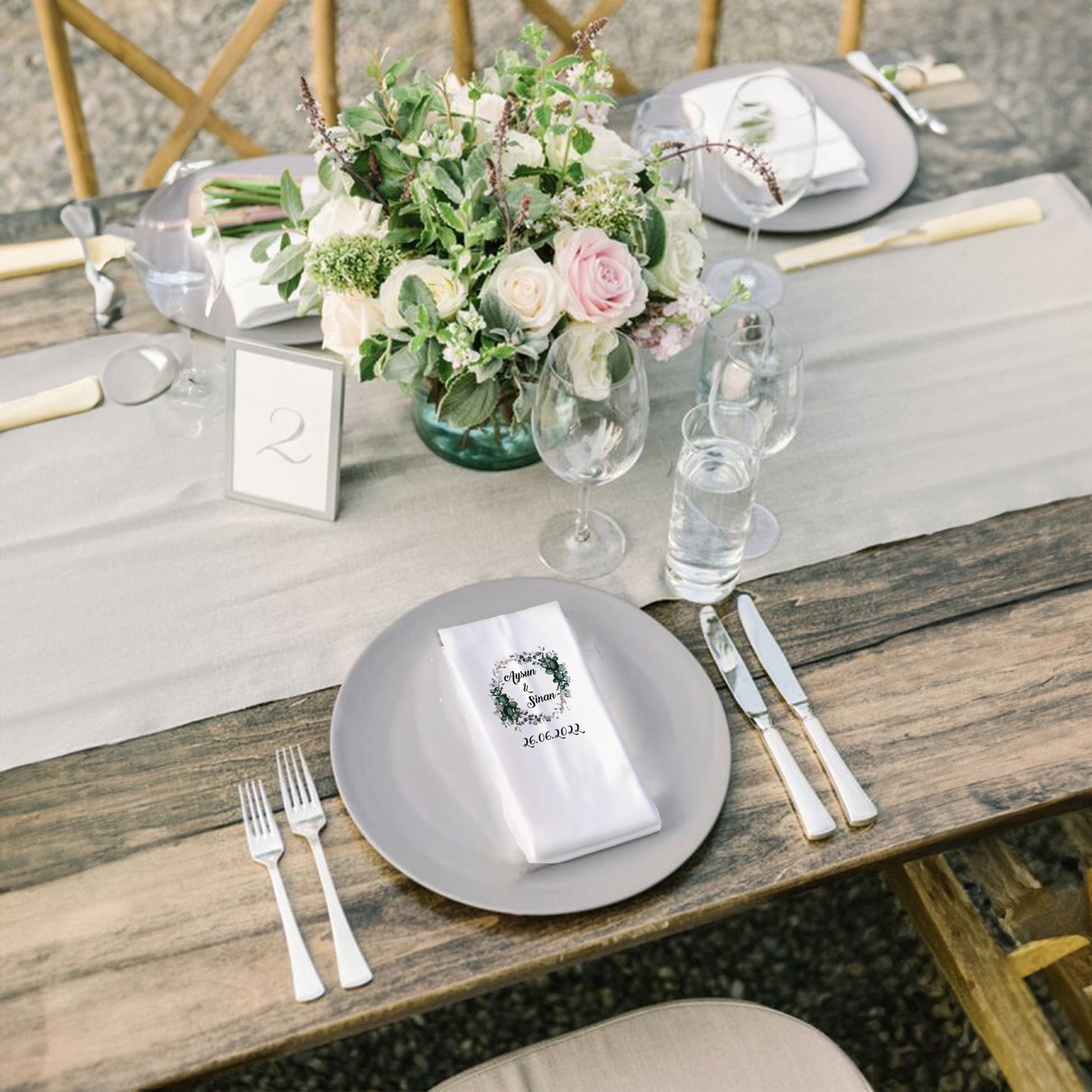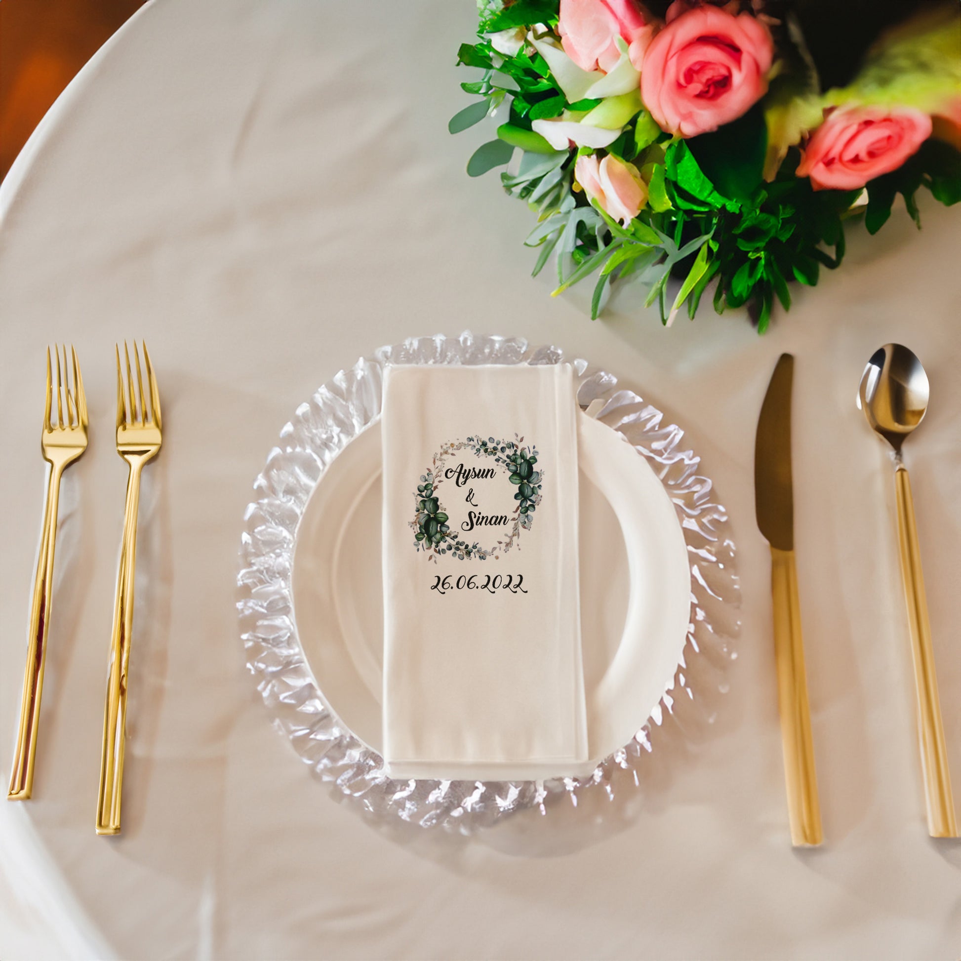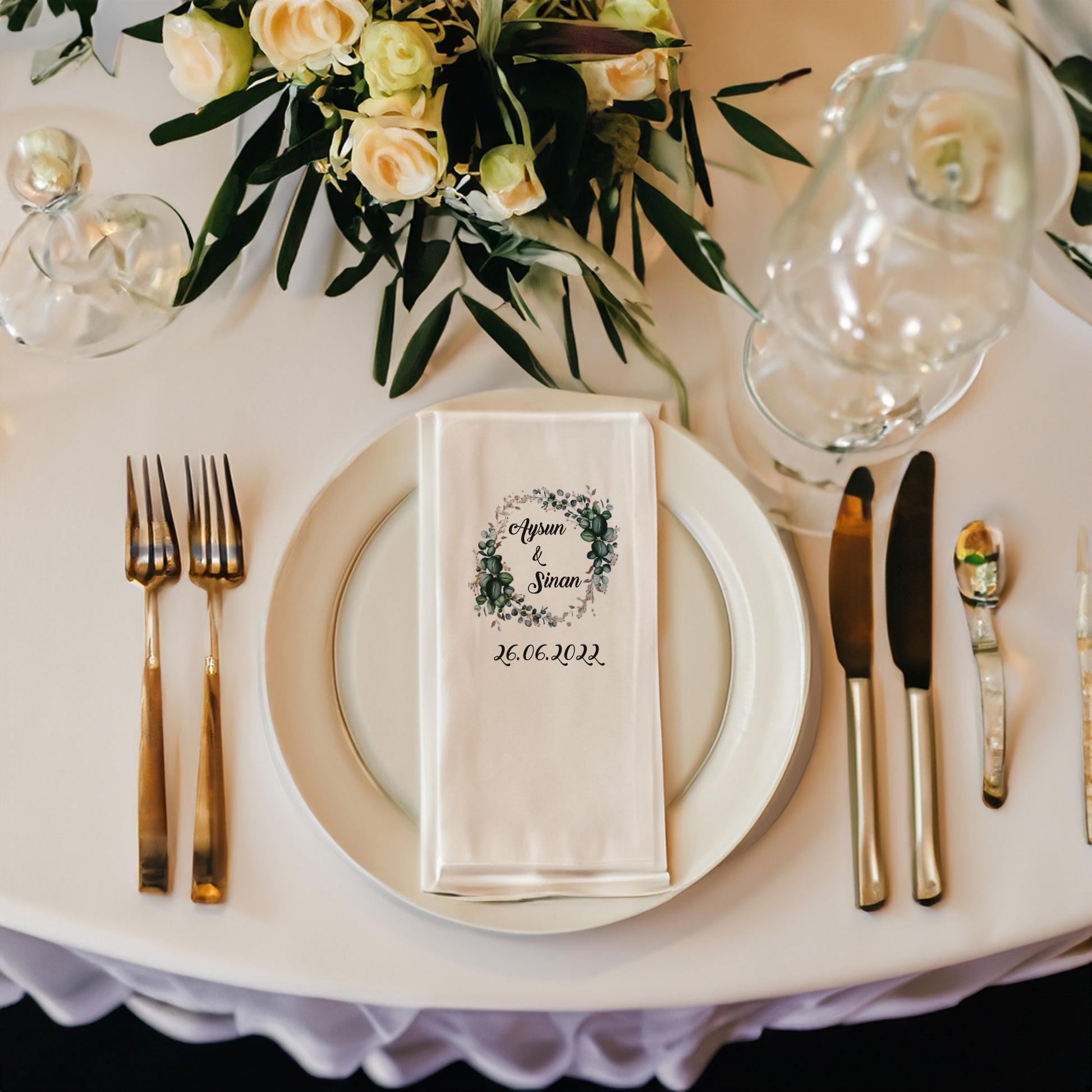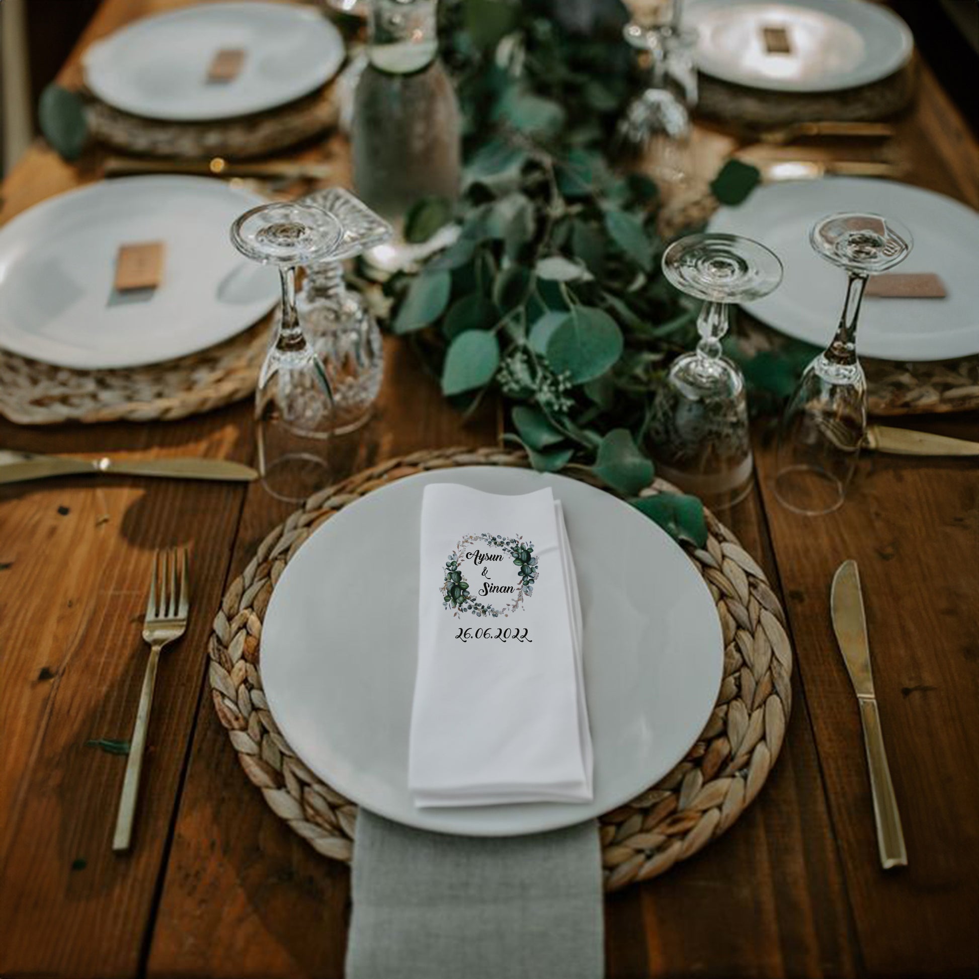 Özel günlerinizi unutulmaz kılacak zarif bir dokunuş: Yuvarlak Yaprak Çerçeveli Düğün, Nişan, Söz ve Kına Peçetesi Seti!