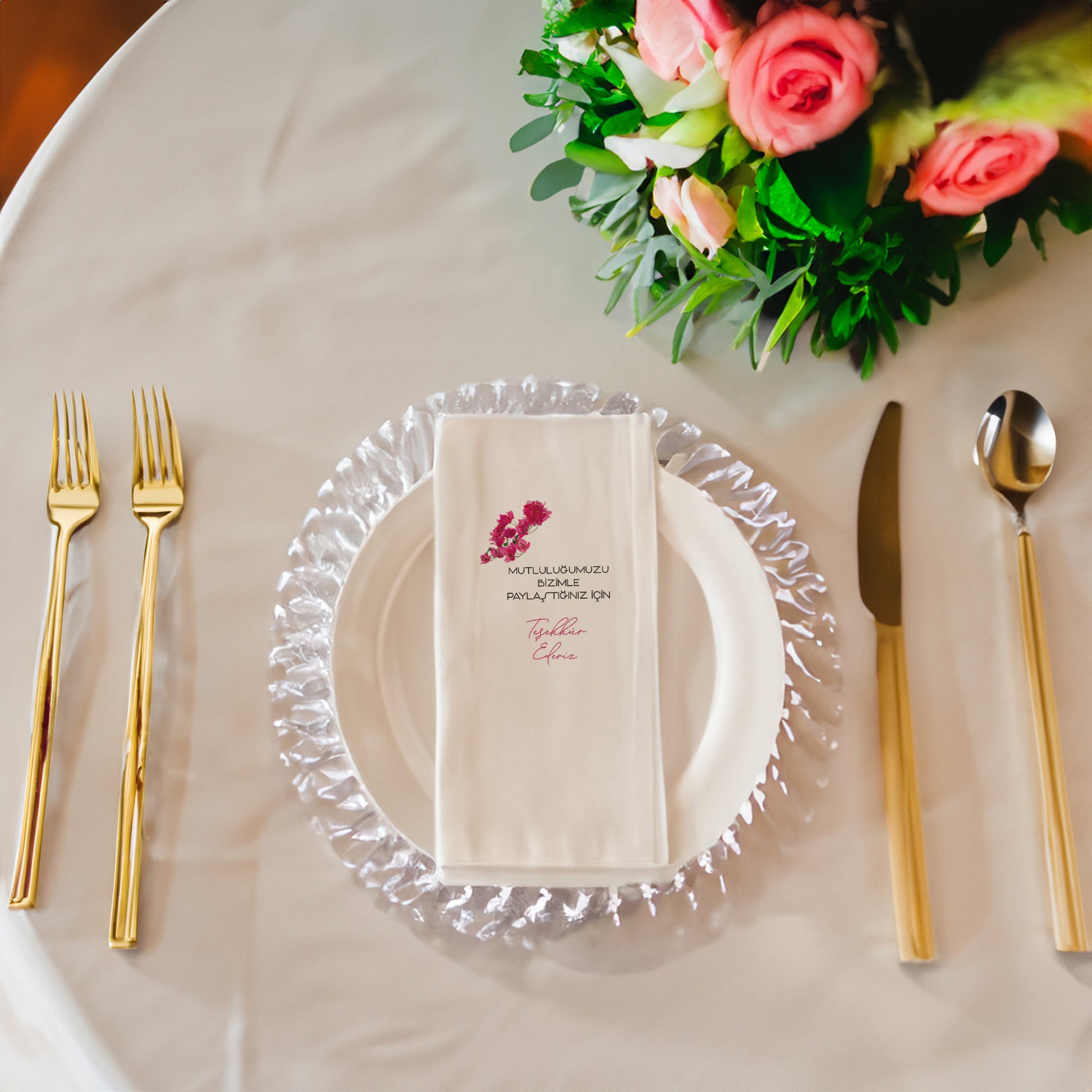 Özel günlerinizi unutulmaz kılacak zarif bir dokunuş: Begonvil Detaylı Düğün, Nişan, Söz ve Kına Peçetesi Seti!