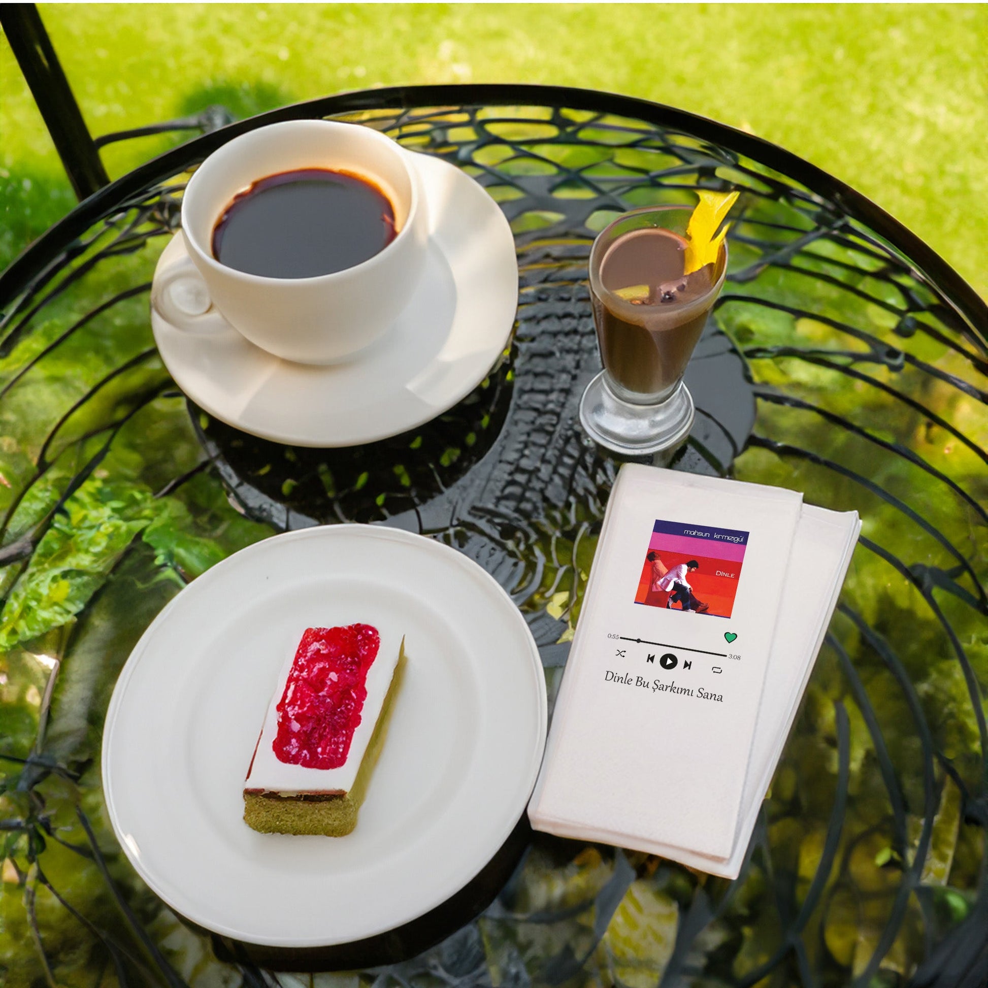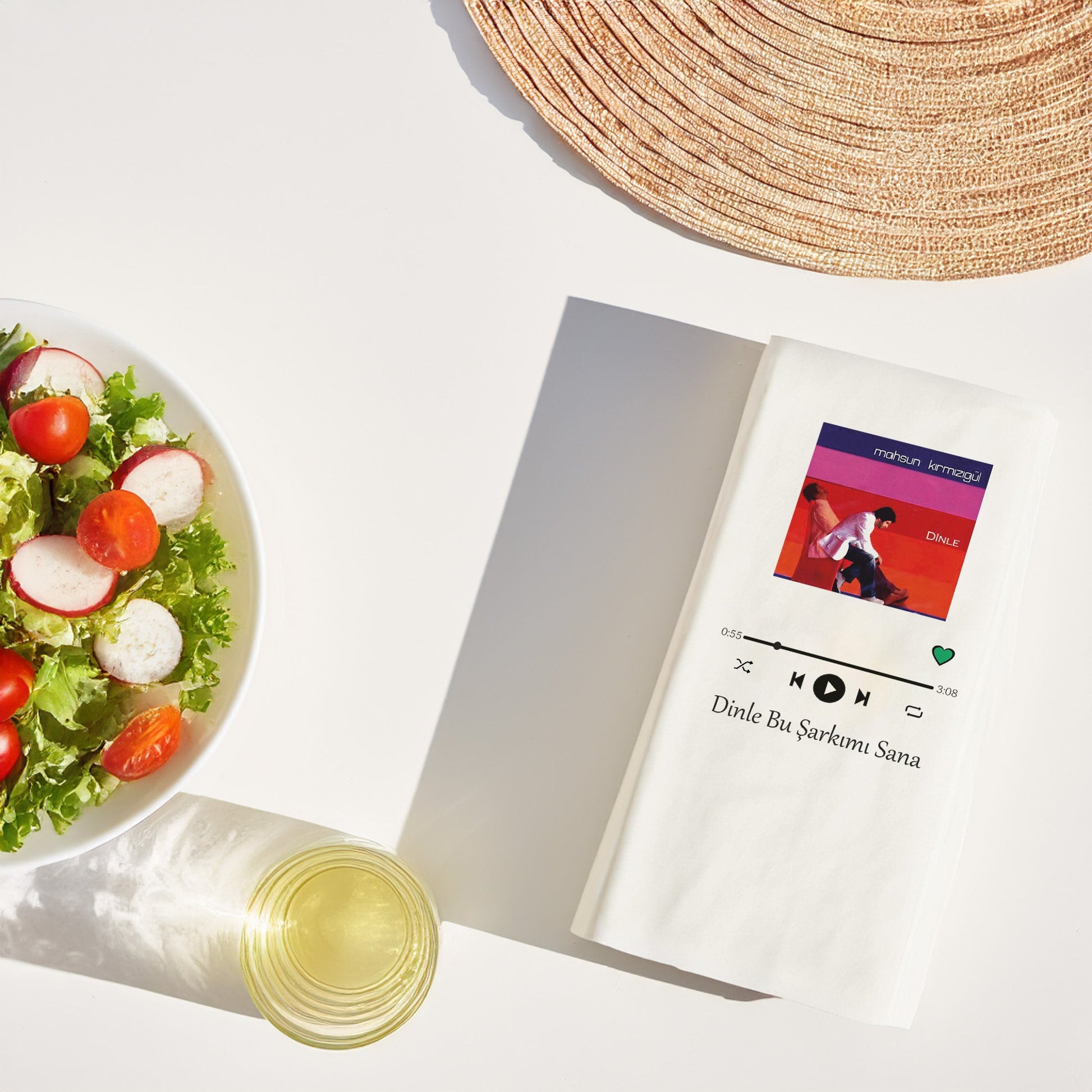 Masanıza nostaljik ve romantik bir dokunuş katmak isterseniz, “Dinle Bu Şarkımı Sana” tasarımlı özel baskılı peçetemiz tam size göre!