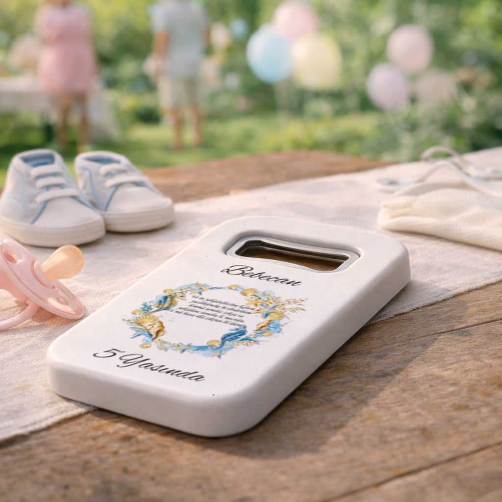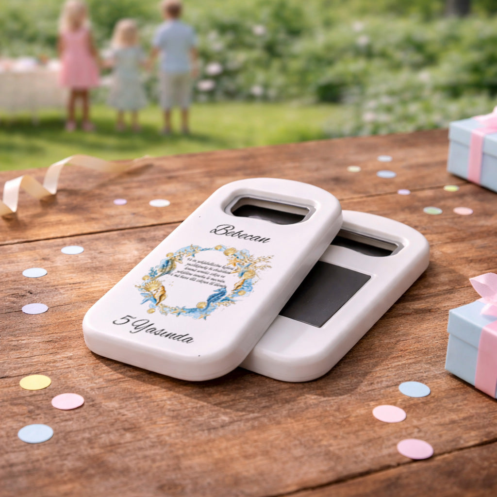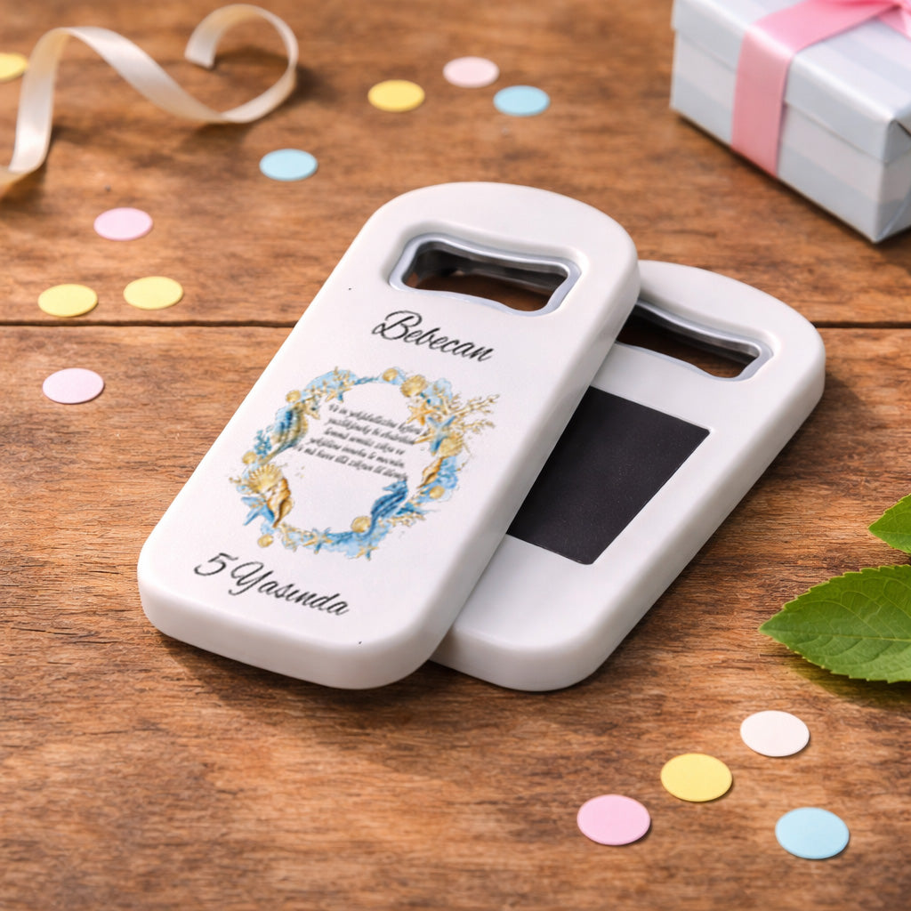 Hem şişe açacağı hem de magnet olarak kullanılan, UV baskı ile kişiselleştirilebilen çok amaçlı bir üründür.