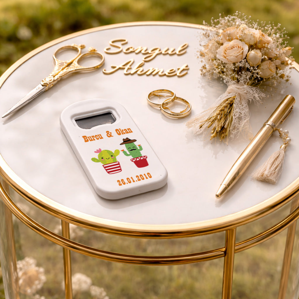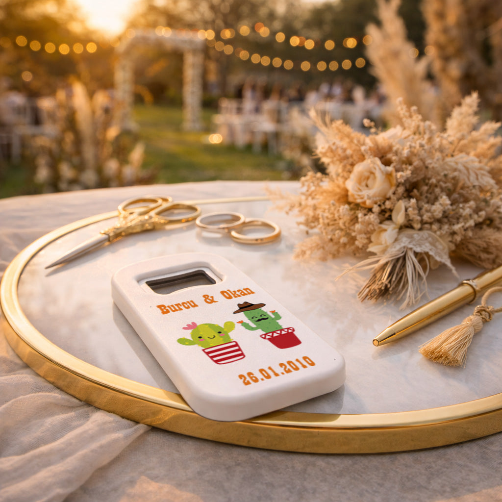 Eğlenceli Kaktüs Düğün Magnet Açacak | Kişiye Özel Tasarım
