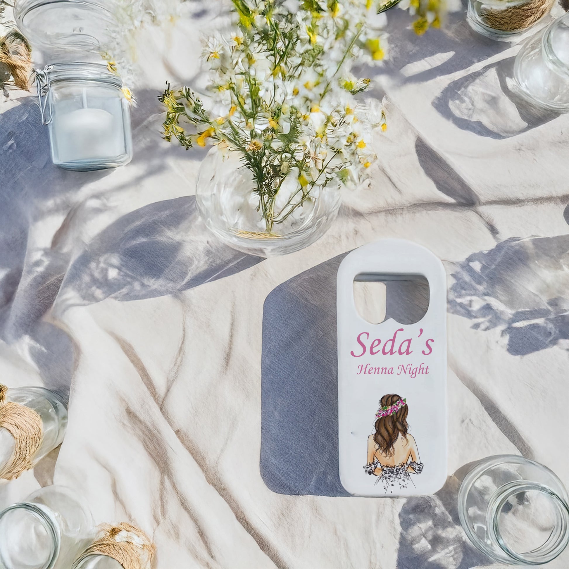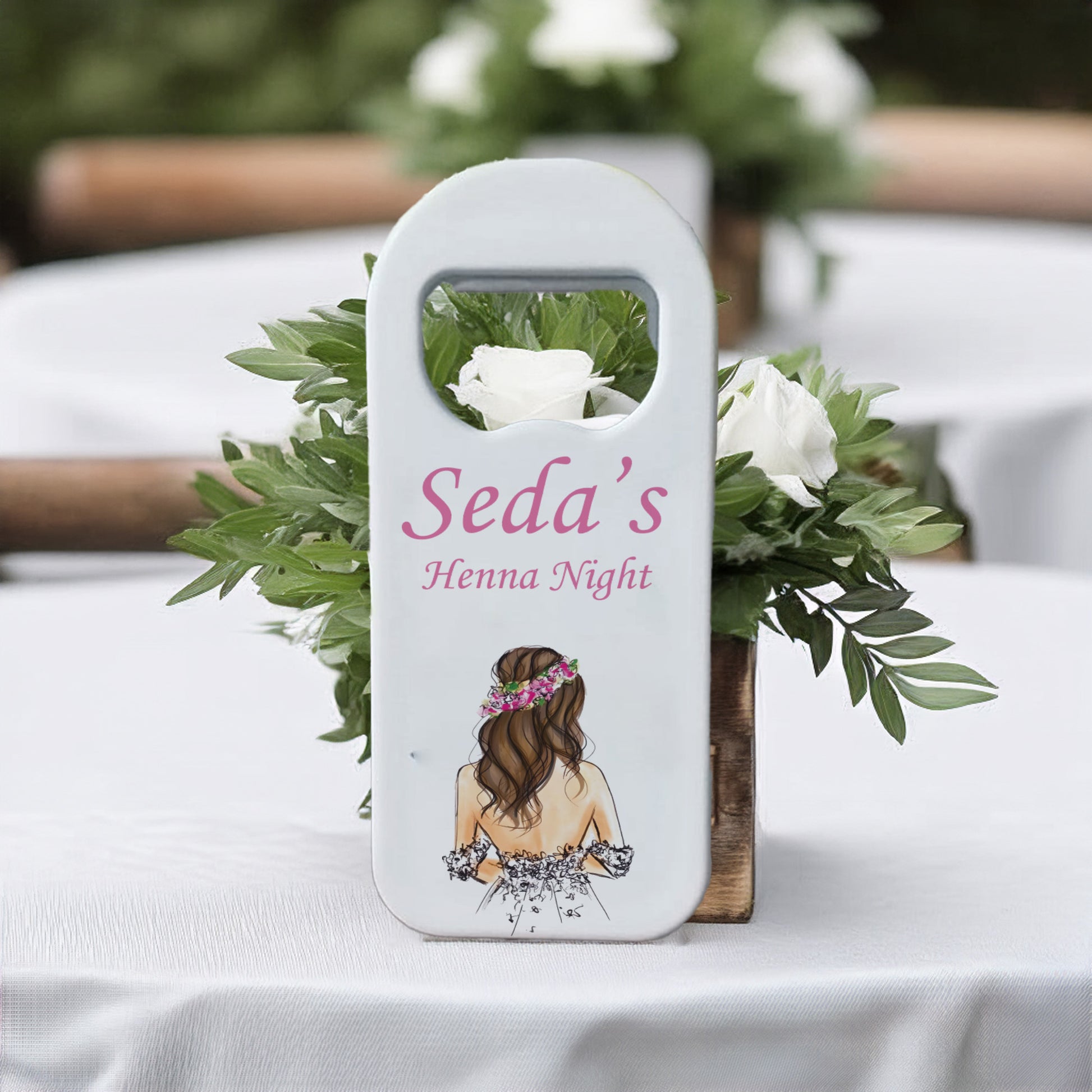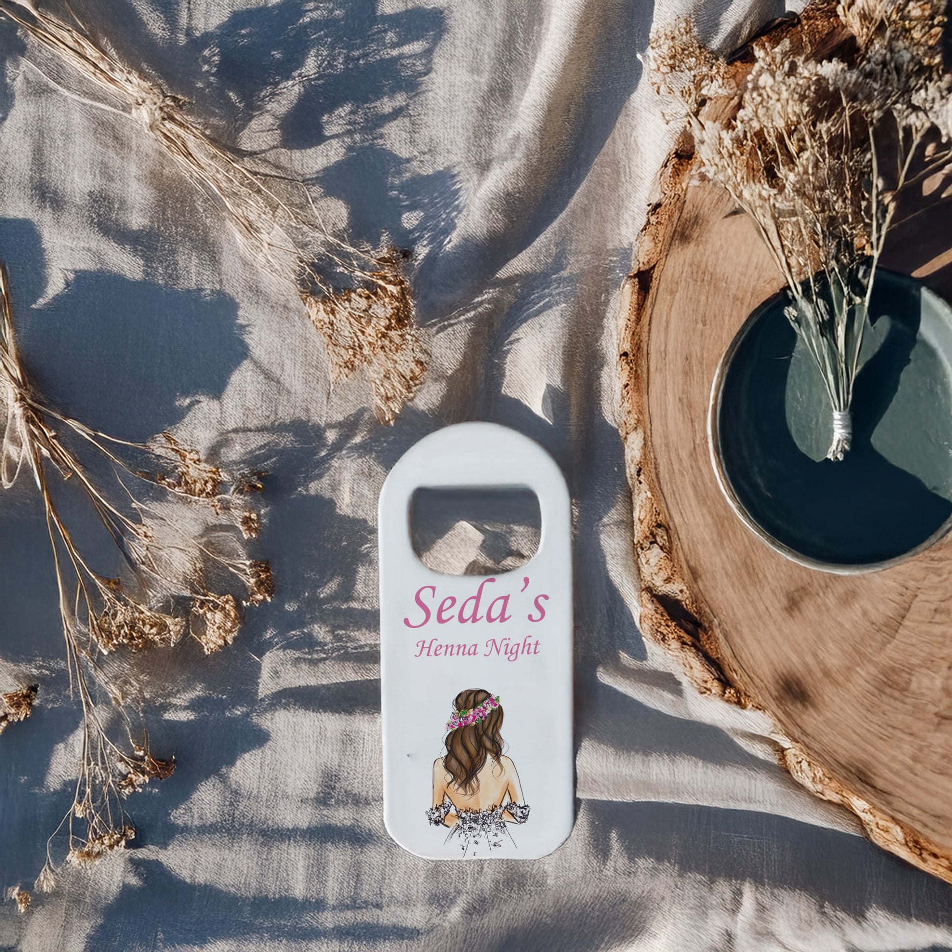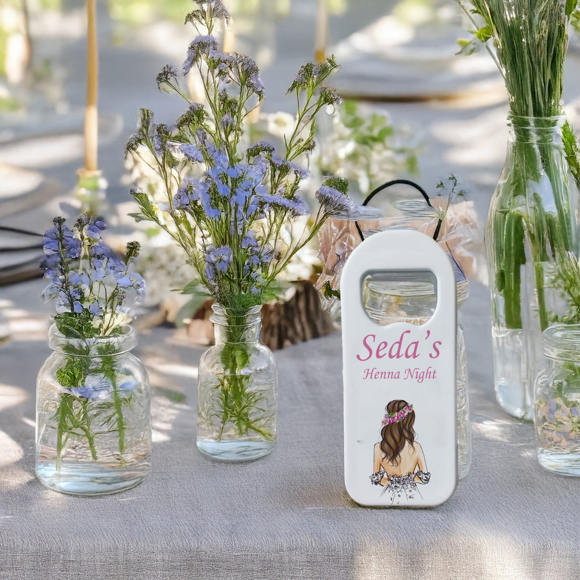 Kişiye özel desenlerimizle süslenmiş plastik açacak magnetlerimizle düğün,nişan, söz ya da kına gecenize unutulmaz bir hava katın!