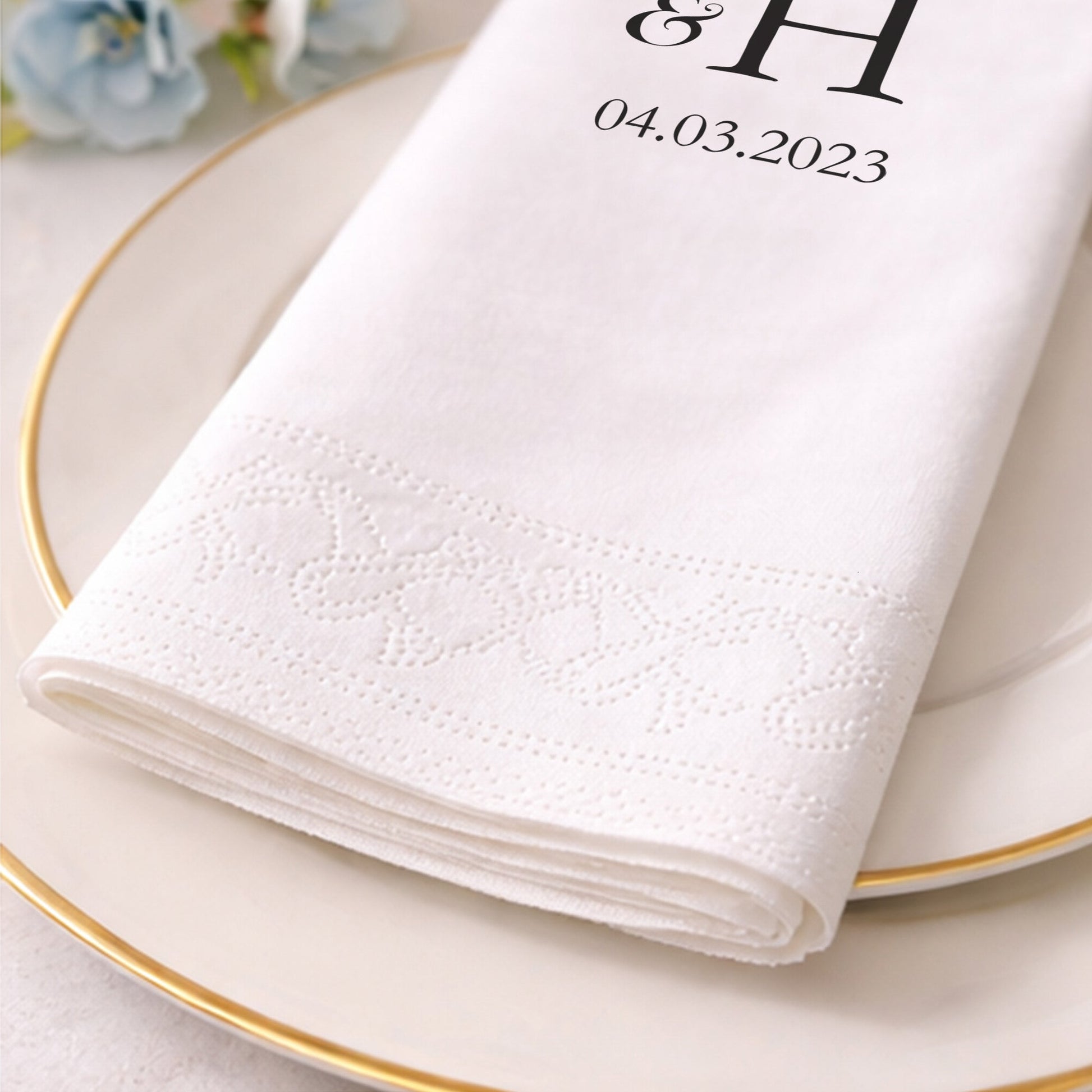 Harf monogram odaklı bu baskılı peçete, düğün ve nişan organizasyonlarında modern ve prestijli bir sunum sağlar. Sade tipografiyle hazırlanan tasarım, organizasyon peçetesi olarak masalarda düzenli ve kurumsal bir görünüm oluşturur. Özel gün peçetesi olarak isim baş harflerini öne çıkararak kişisel bir detay sunar. Düğün peçetesi ve nişan peçetesi olarak farklı konseptlerle uyumludur. Baskılı peçete kalitesi sayesinde yazılar net ve şıktır. Zamansız ve profesyonel bir stil arayan çiftler için ideal bir tercihtir.