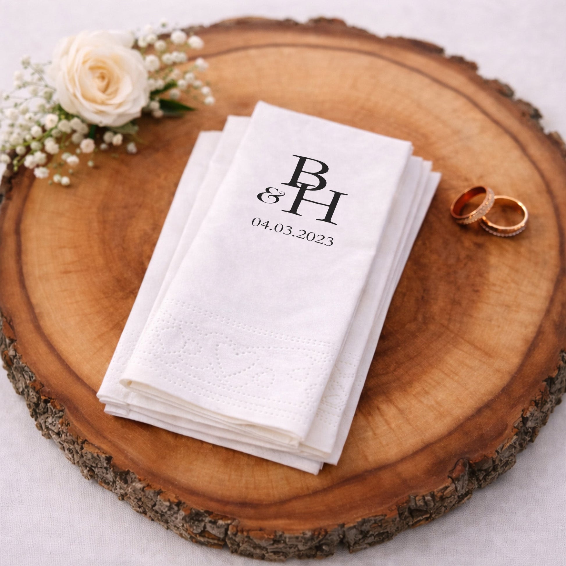 Harf Logolu Modern Düğün ve Nişan Baskılı Peçete Tasarımı