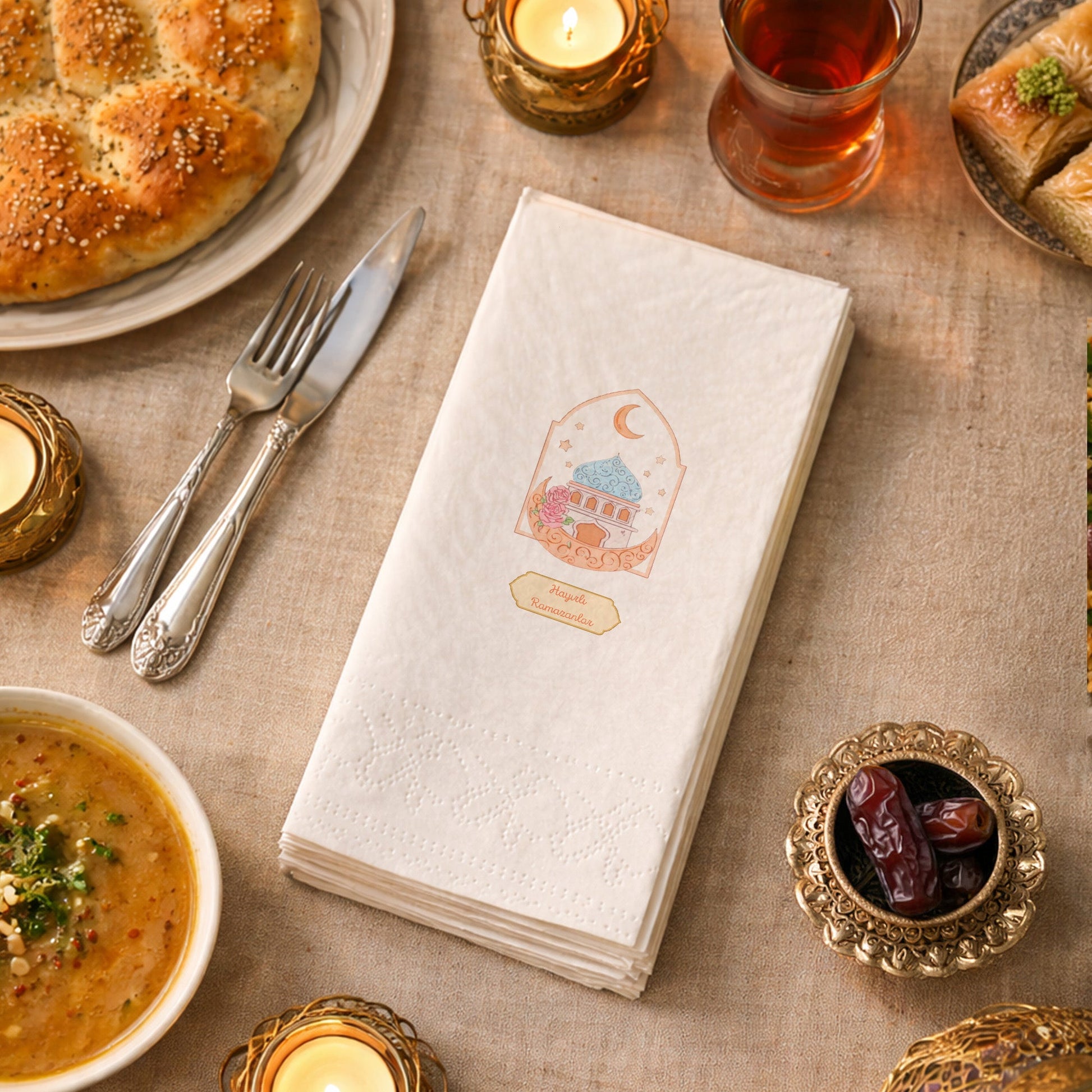 Ramazan sofralarında yumuşak, huzurlu ve estetik bir dokunuş arayanlar için ideal bir tercihtir.