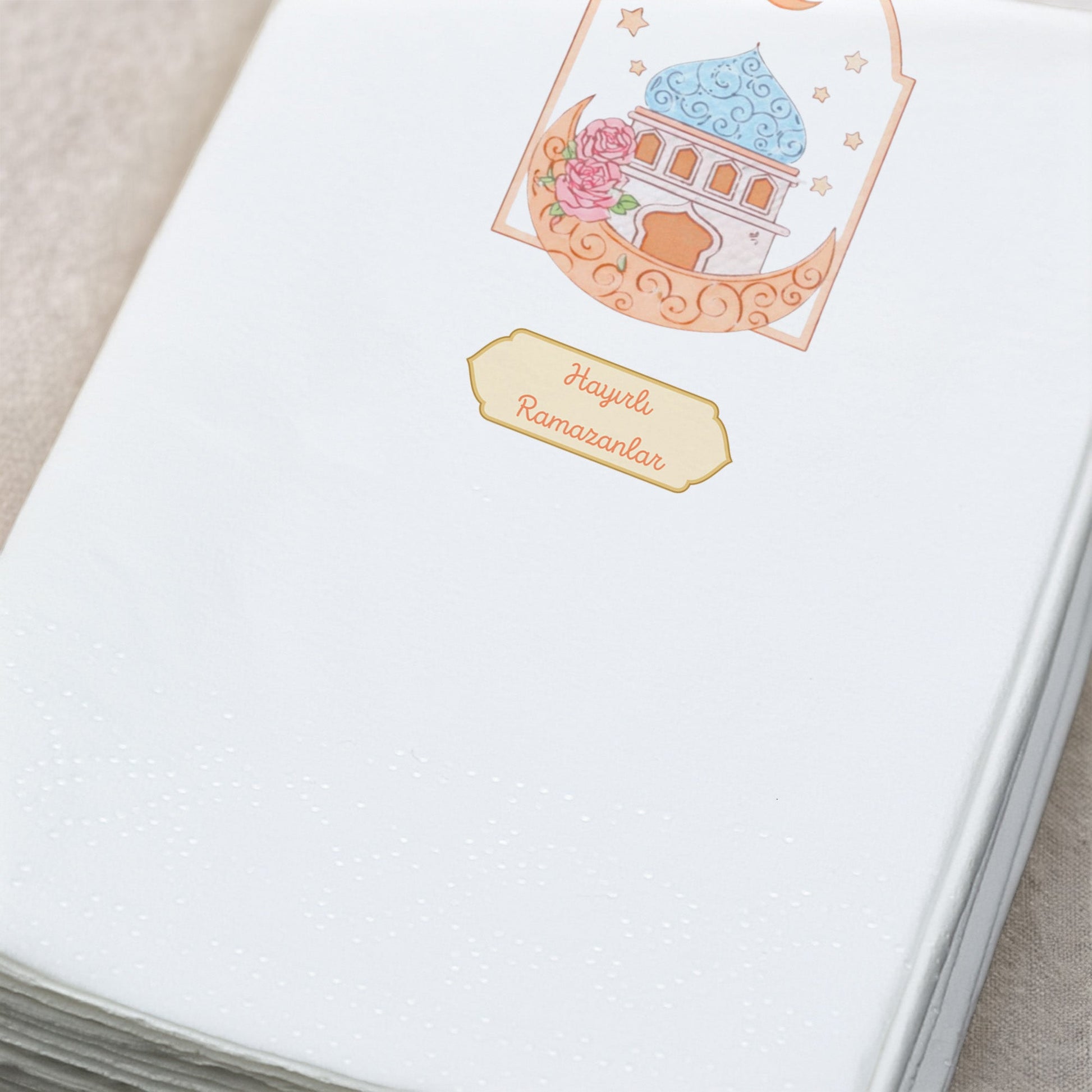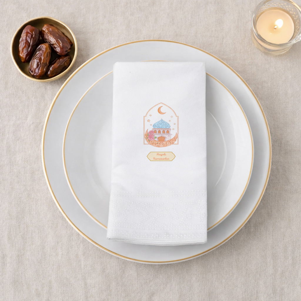 Hayırlı Ramazanlar Baskılı Peçete – Pastel Cami & Hilal Desenli | 33x33 cm