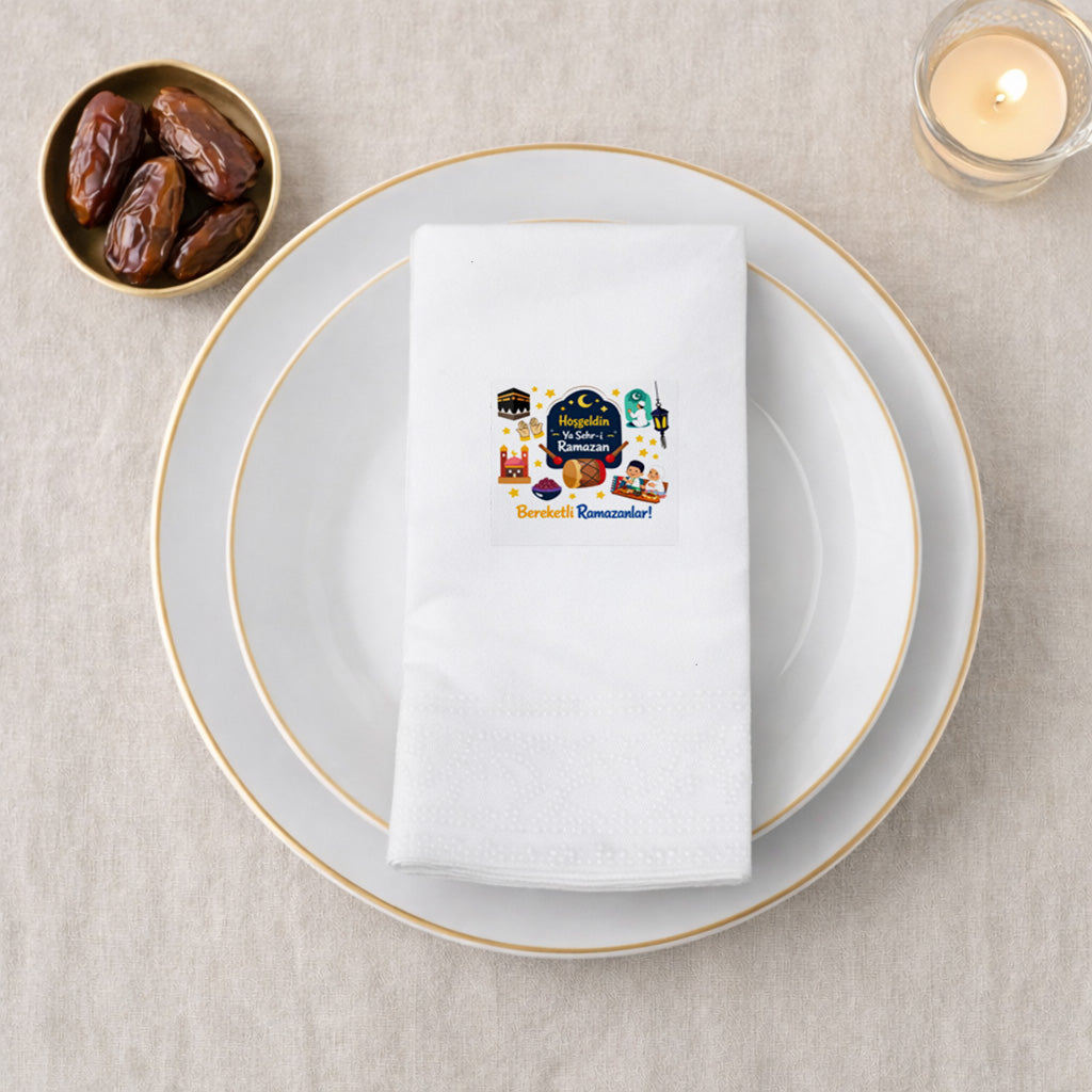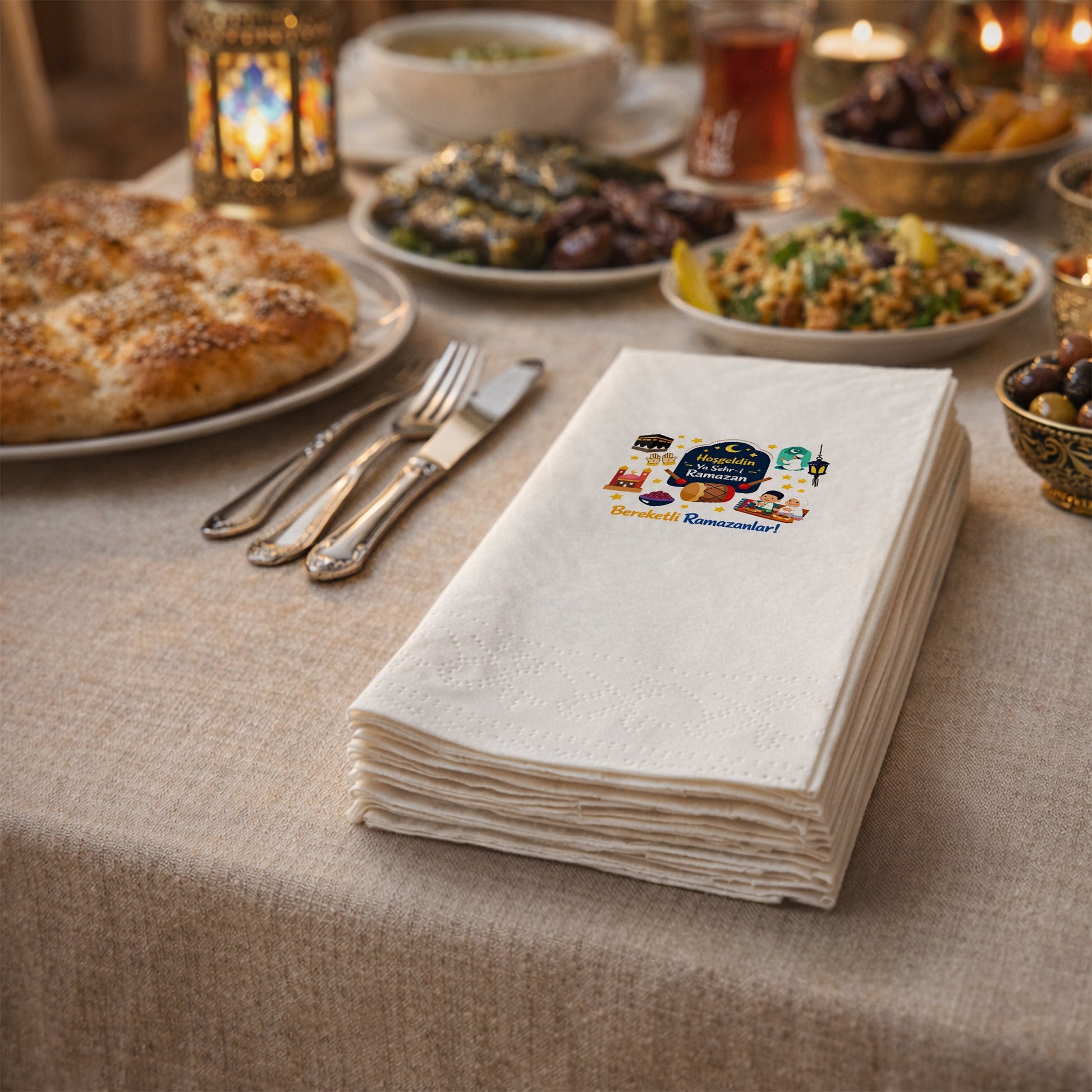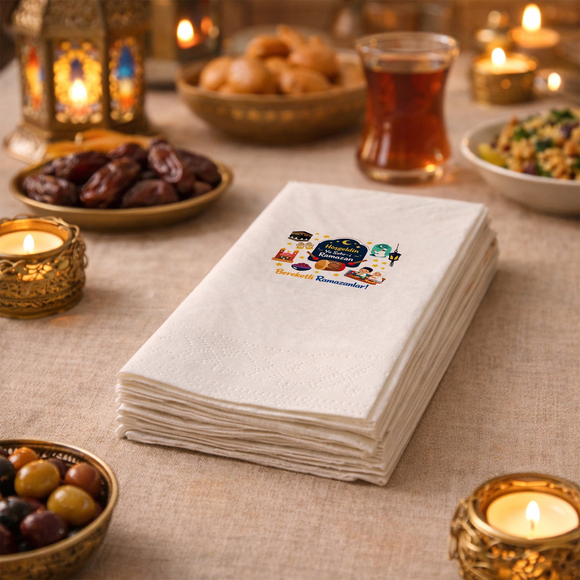Ramazan ayının tüm sembollerini bir araya getiren bu özel Ramazan Desenli Baskılı Peçete,