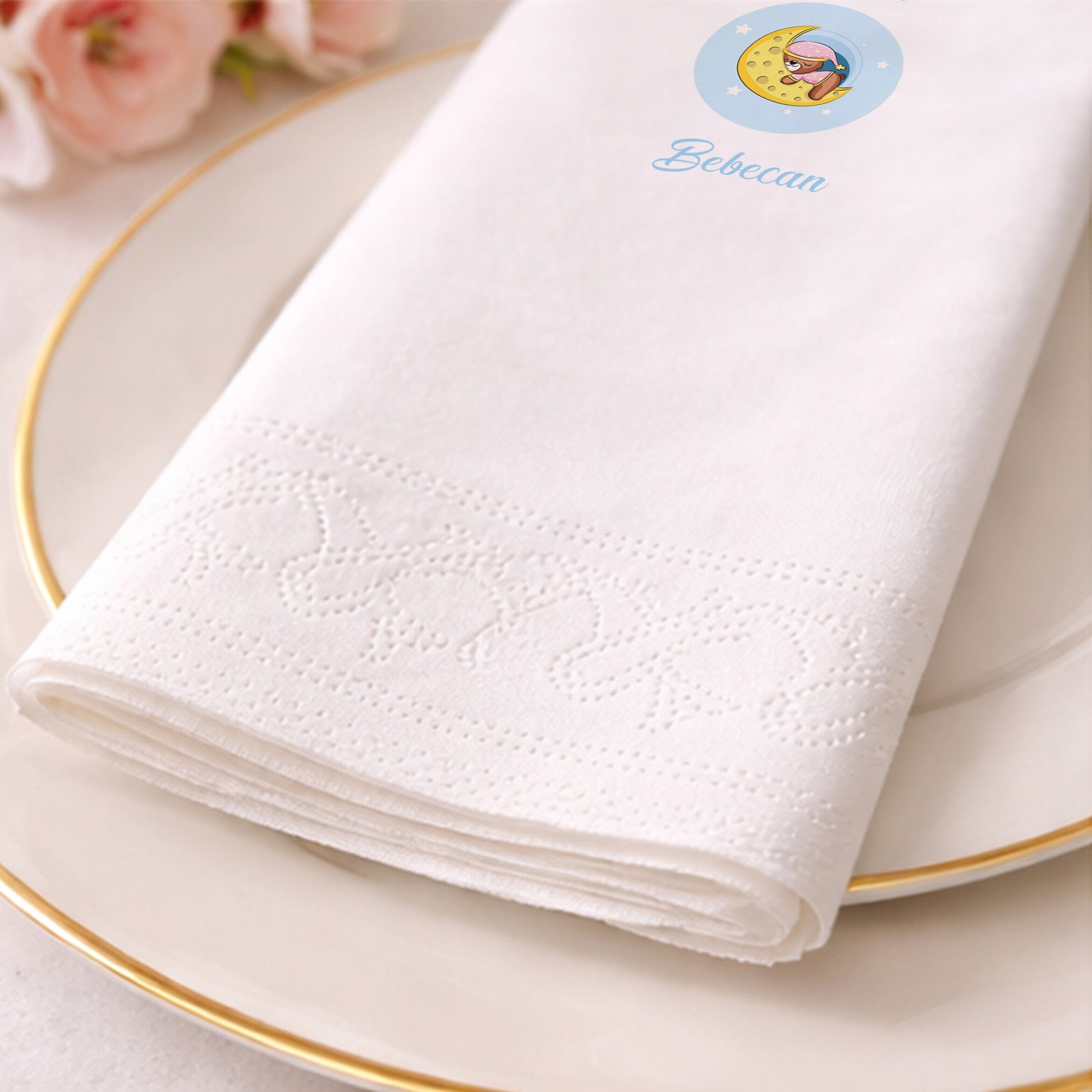 Yeni bir hayatın gelişini kutlamak için tasarlanan bu zarif peçete, gökyüzünün huzurunu masanıza taşıyor. Mavi daire içindeki ay dede üzerinde uyuyan sevimli karakter figürü, baby shower ve hastane odası ikramları için idealdir. Pastel tonlardaki "Hoşgeldin Bebecan" yazısı, samimi ve sıcak bir karşılama atmosferi yaratır. Üst segment kağıt kalitesiyle üretilen peçeteler, sıvıyı hızla emer ve sunumlarınızda dağılmadan formunu korur. Bebek mevlidi veya yenidoğan partilerinde konuklarınıza sunacağınız her bir parça, detaylara verdiğiniz önemi gösterecektir. Modern hatları ve klasik bebek temalarını harmanlayan bu ürün, fotoğraf karelerinde de harika bir arka plan oluşturur. Hem estetik hem de fonksiyonel olan bu tasarım, en özel gününüzün vazgeçilmezi olacak.