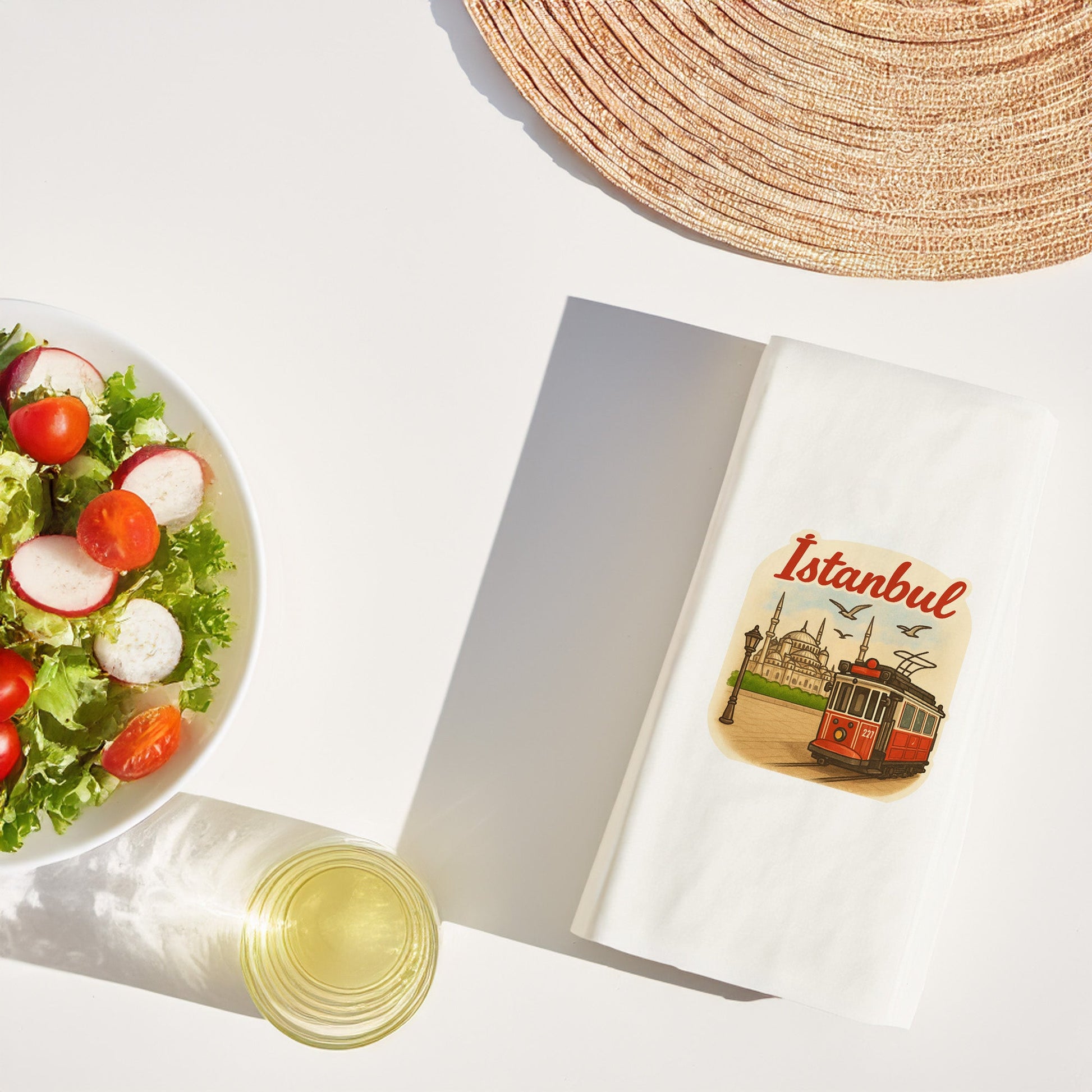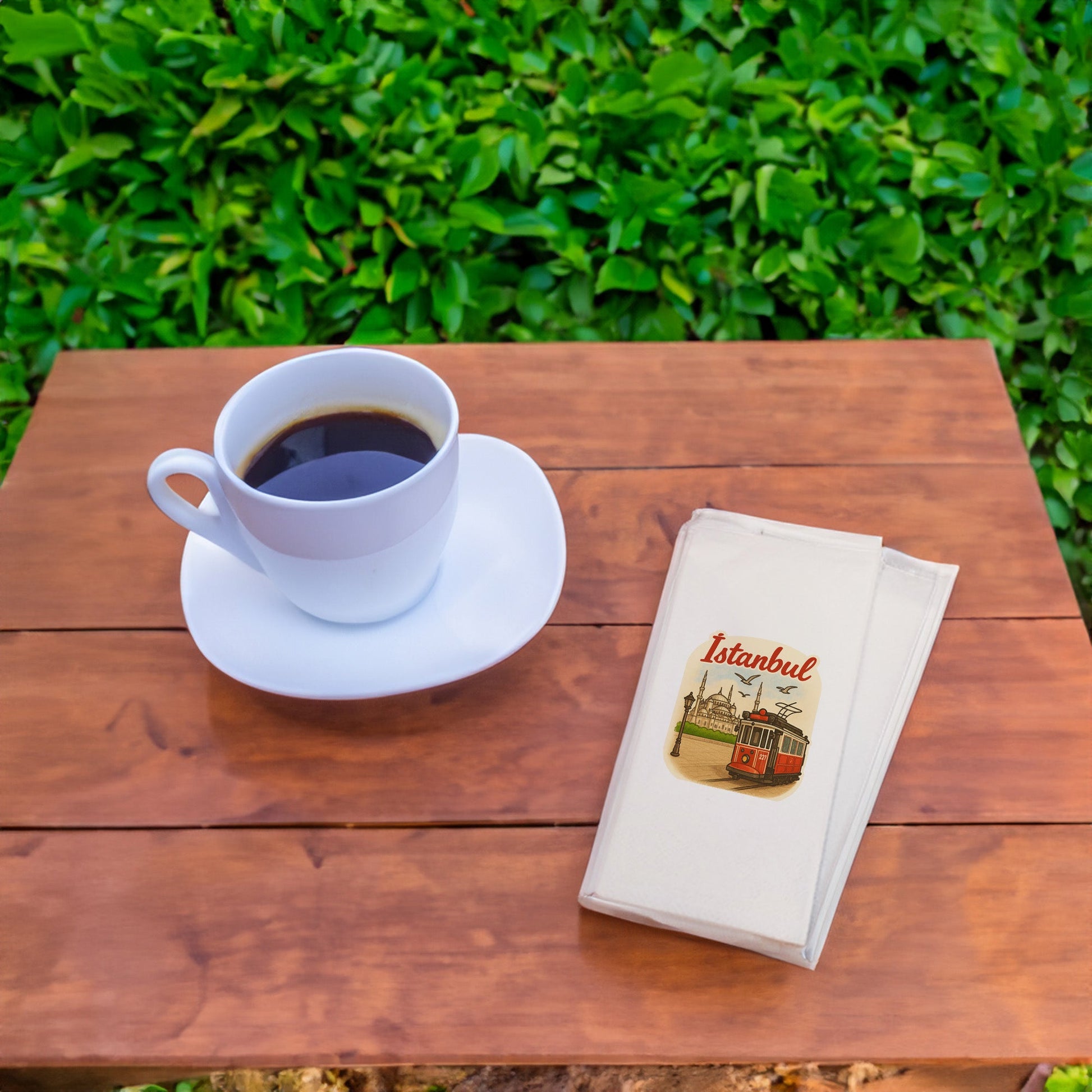 İstanbul temalı bu özel tasarım peçete, sofralarda şehrin nostaljik ruhunu ve kültürel zarafetini bir araya getirir.