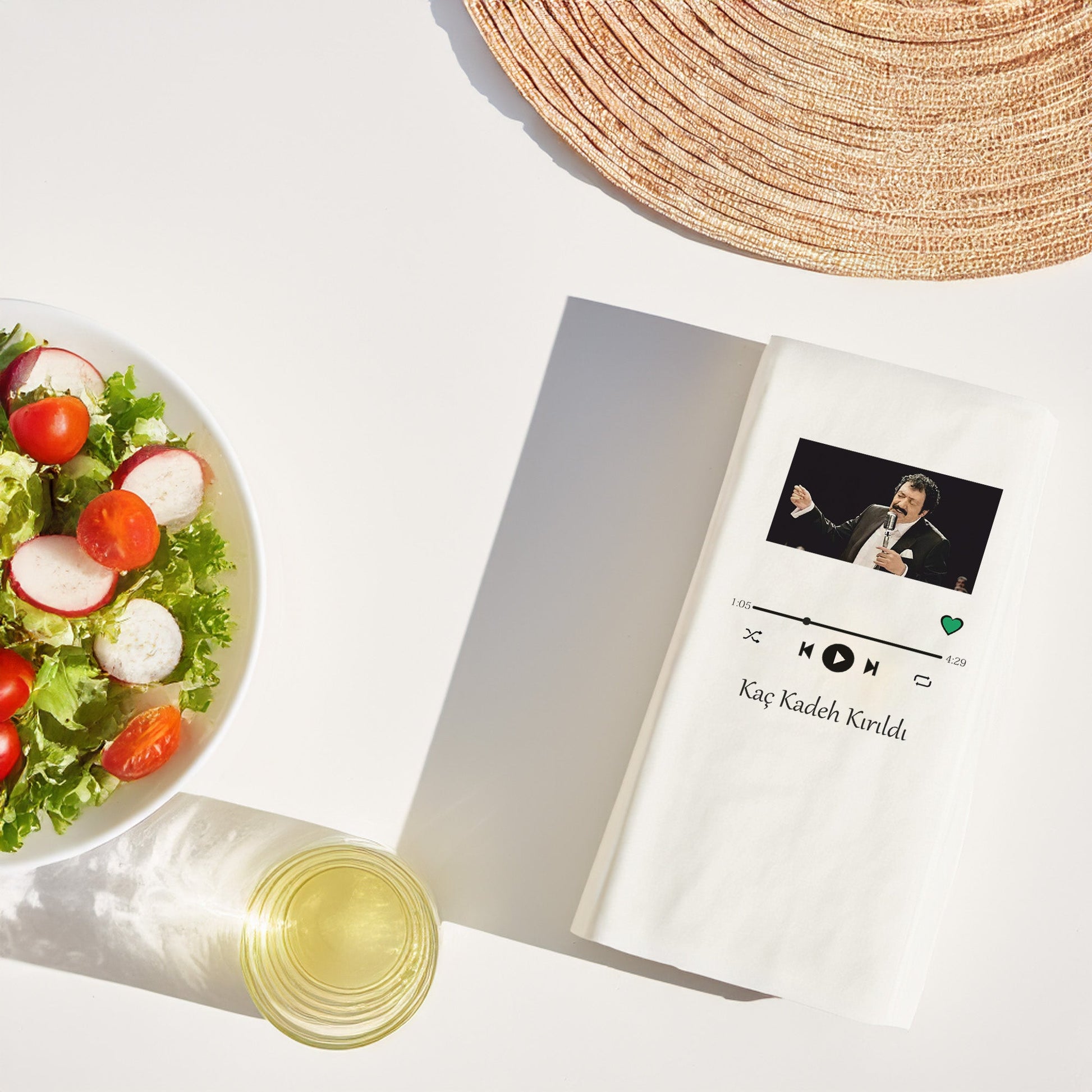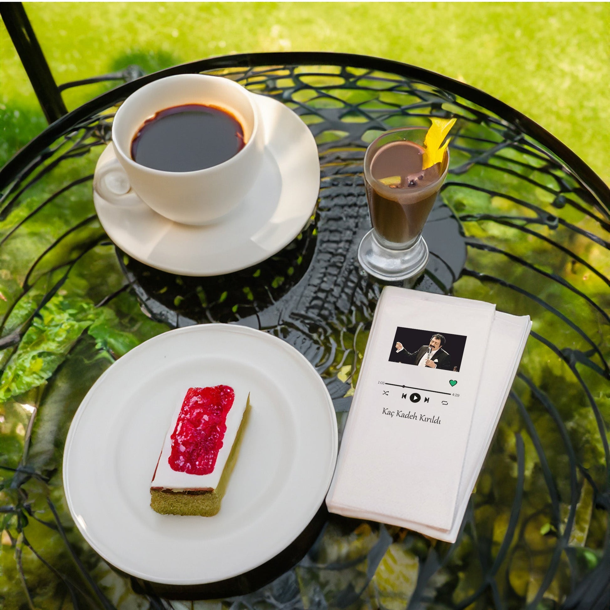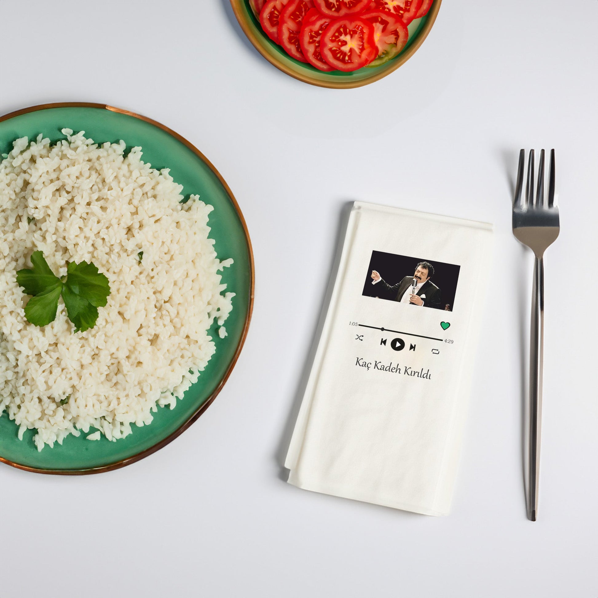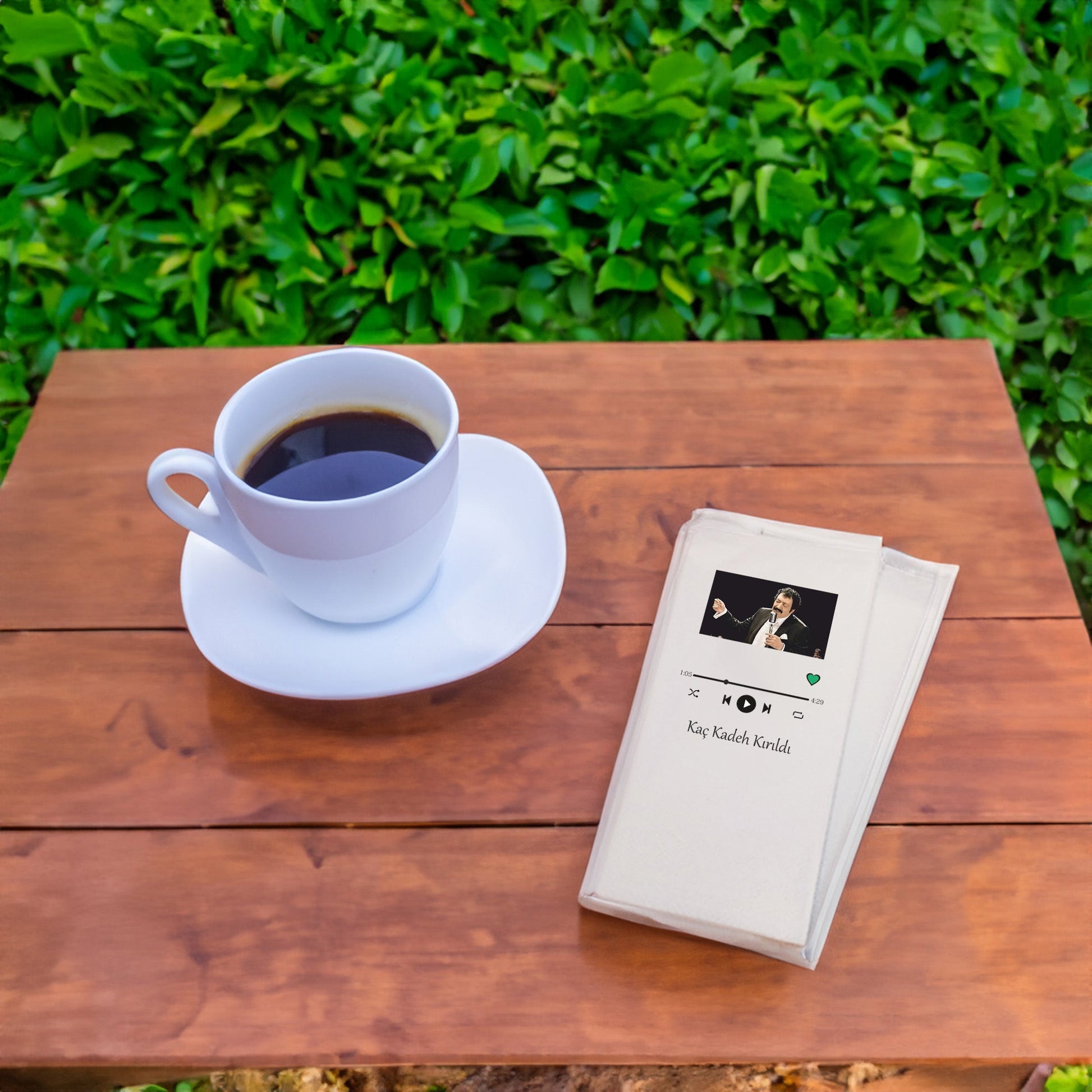Sevilen klasiklerden “Kaç Kadeh Kırıldı” şarkısından ilham alınarak tasarlanan bu özel baskılı peçete, masalarınıza nostaljik, duygusal ve estetik bir dokunuş katıyor.