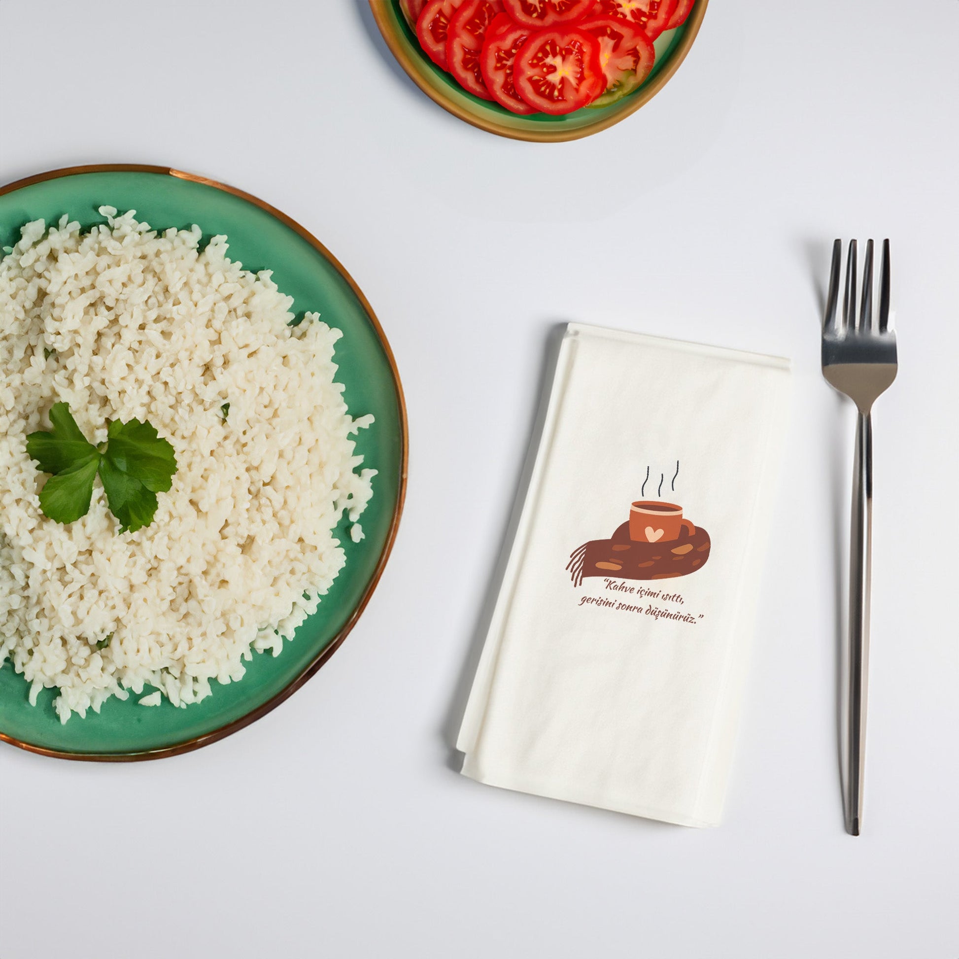 Bu sıcak ve samimi mesajla tasarlanan Kahve Desenli Baskılı Peçete, kahve keyfini anın tadını çıkarma felsefesiyle buluşturur. Kalpli fincan illüstrasyonu ve yumuşak renk geçişleriyle, huzur veren bir atmosfer yaratır. Özellikle soğuk günlerde, battaniye altında kahve keyfi hissini sofralara taşır.
