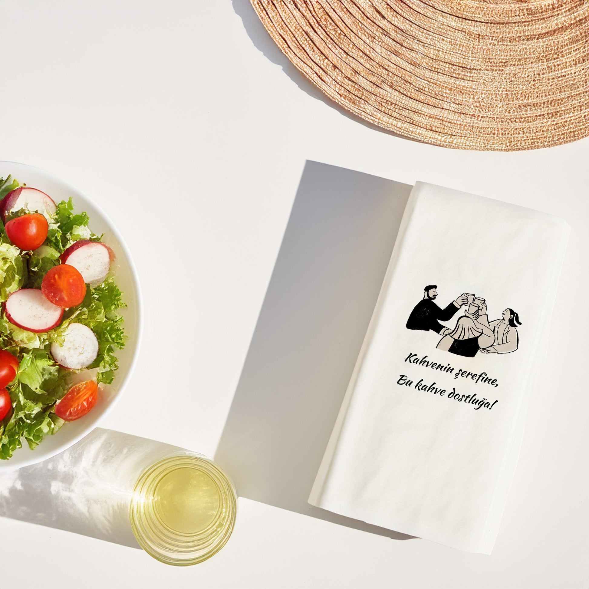 Kahve Sohbeti Temalı Baskılı Peçete – Dostlarla Kahve Keyfi Tasarım