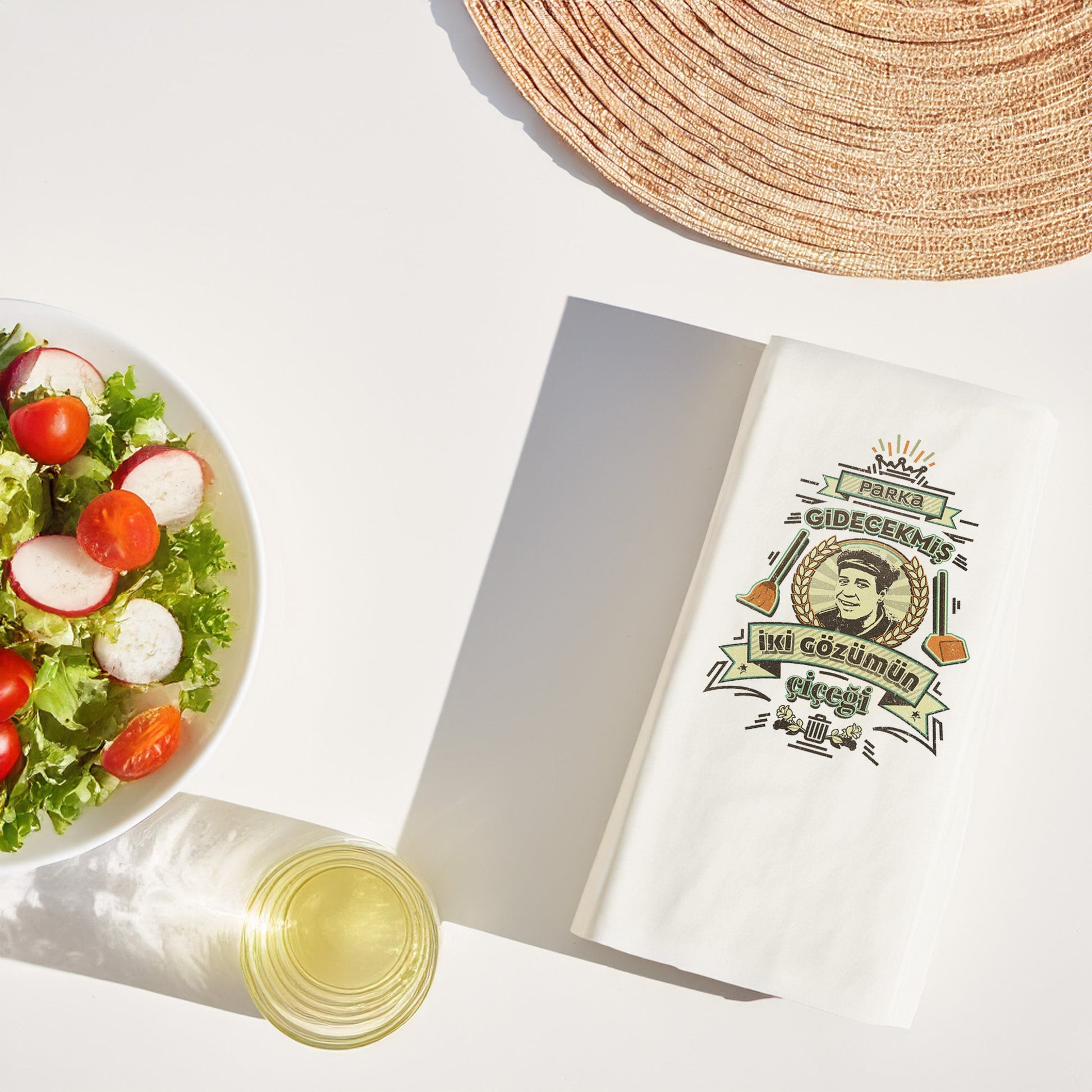 “Parka Gidecekmiş… İki Gözümün Çiçeği” esprili tasarımı, hem günlük sofralara hem de misafirliklere eğlenceli bir hava katıyor.