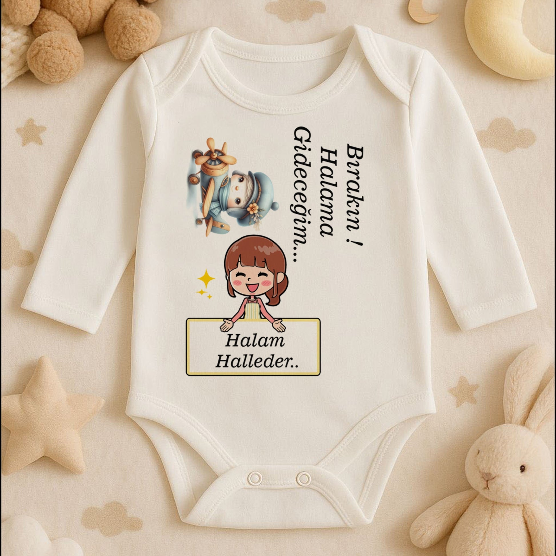 Miniklerin halalarına olan aşkını en tatlı şekilde gösteren, tamamen kişiye özel hazırlanabilen bir bebek zıbını! 🧡