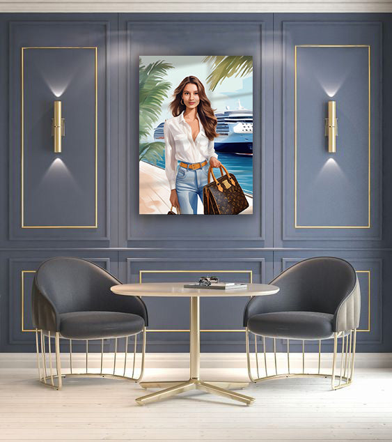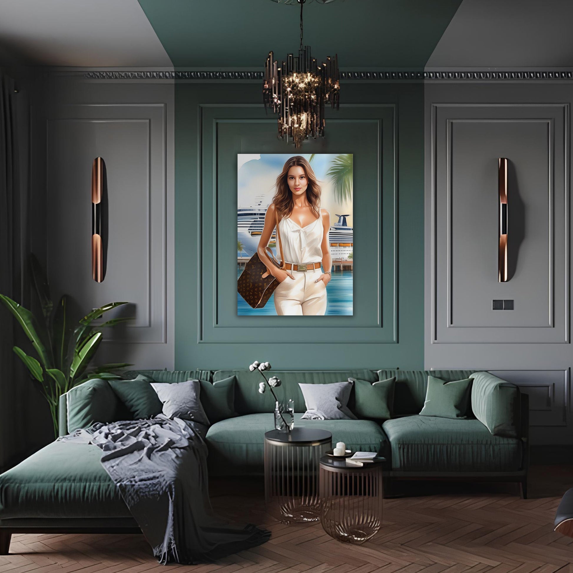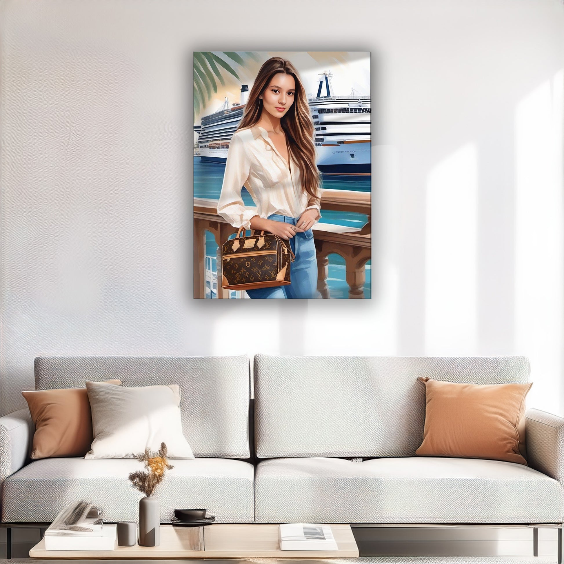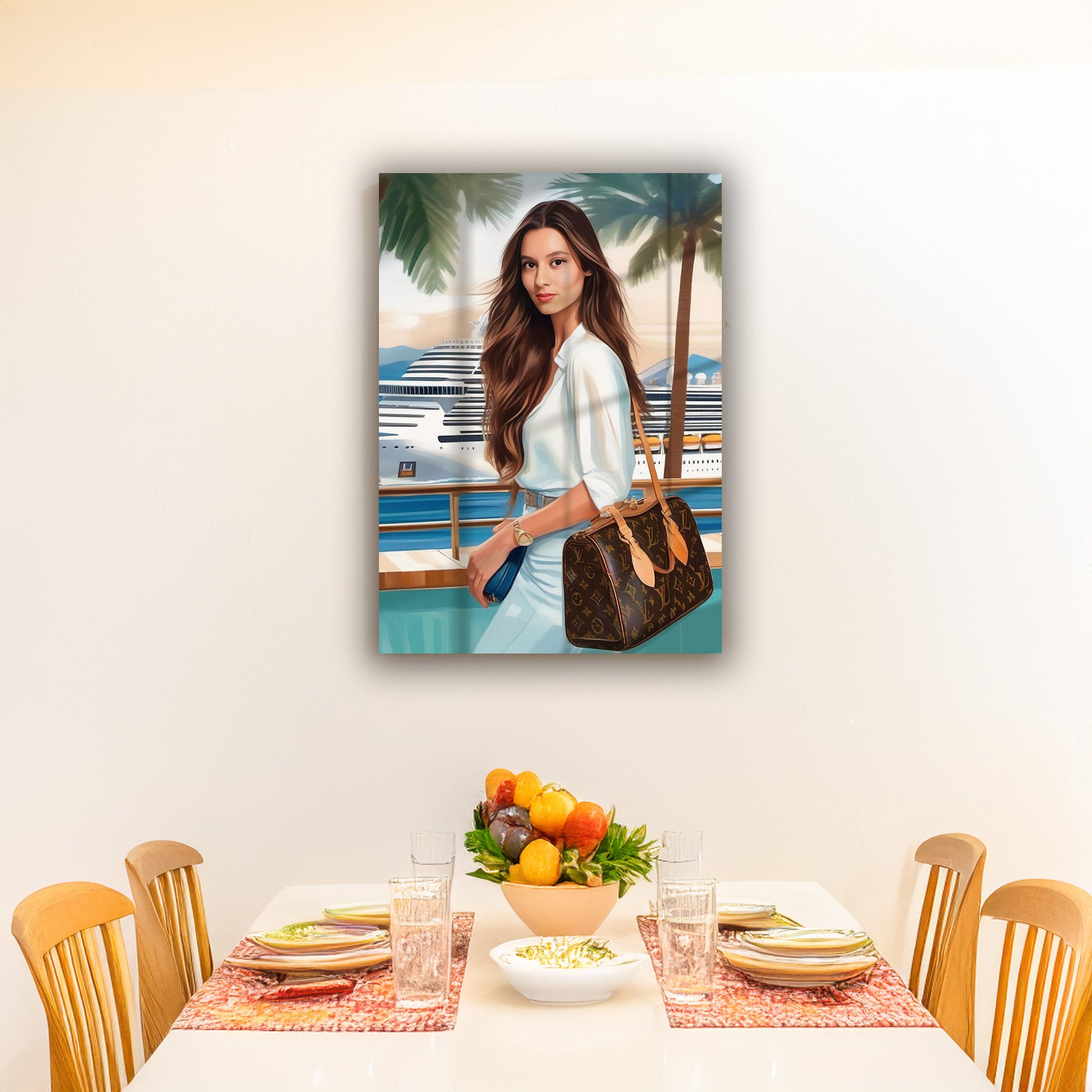 Kişiye Özel Lüks Cruise Seyahati Temalı Karikatür Cam Tablo | Şık ve Maceracı Dekor