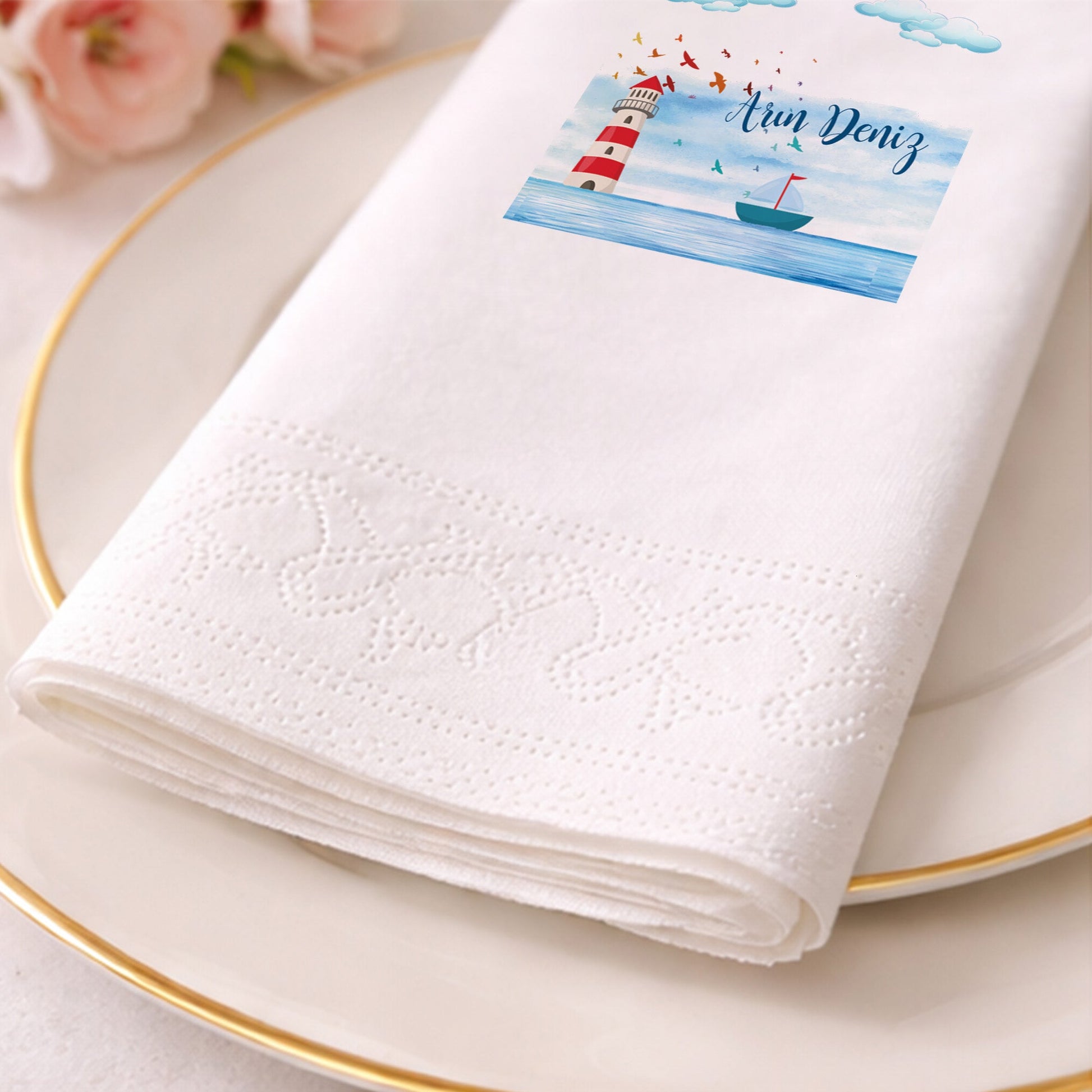 Küçük Prens illüstrasyonundan ilham alan bu tasarım, bebeğin dünyaya gelişini masalsı bir dille karşılamak isteyenler için hazırlanmıştır. Yıldızlar, gezegenler ve zarif çizimler sayesinde duygusal ve sıcak bir atmosfer sunar. Yenidoğan ziyareti, baby shower ve bebek mevlidi organizasyonlarında anlamlı bir masa detayı olarak öne çıkar. Kişiye özel isim bilgisi ile hazırlanan tasarım, misafirler için özel bir hatıra niteliği taşır. Çift katlı yapısı yumuşak ve dayanıklıdır. Gıda temasına uygun baskı ile üretilmiştir. Sade, duygusal ve hikâyesi olan konseptleri seven aileler için ideal bir seçimdir.