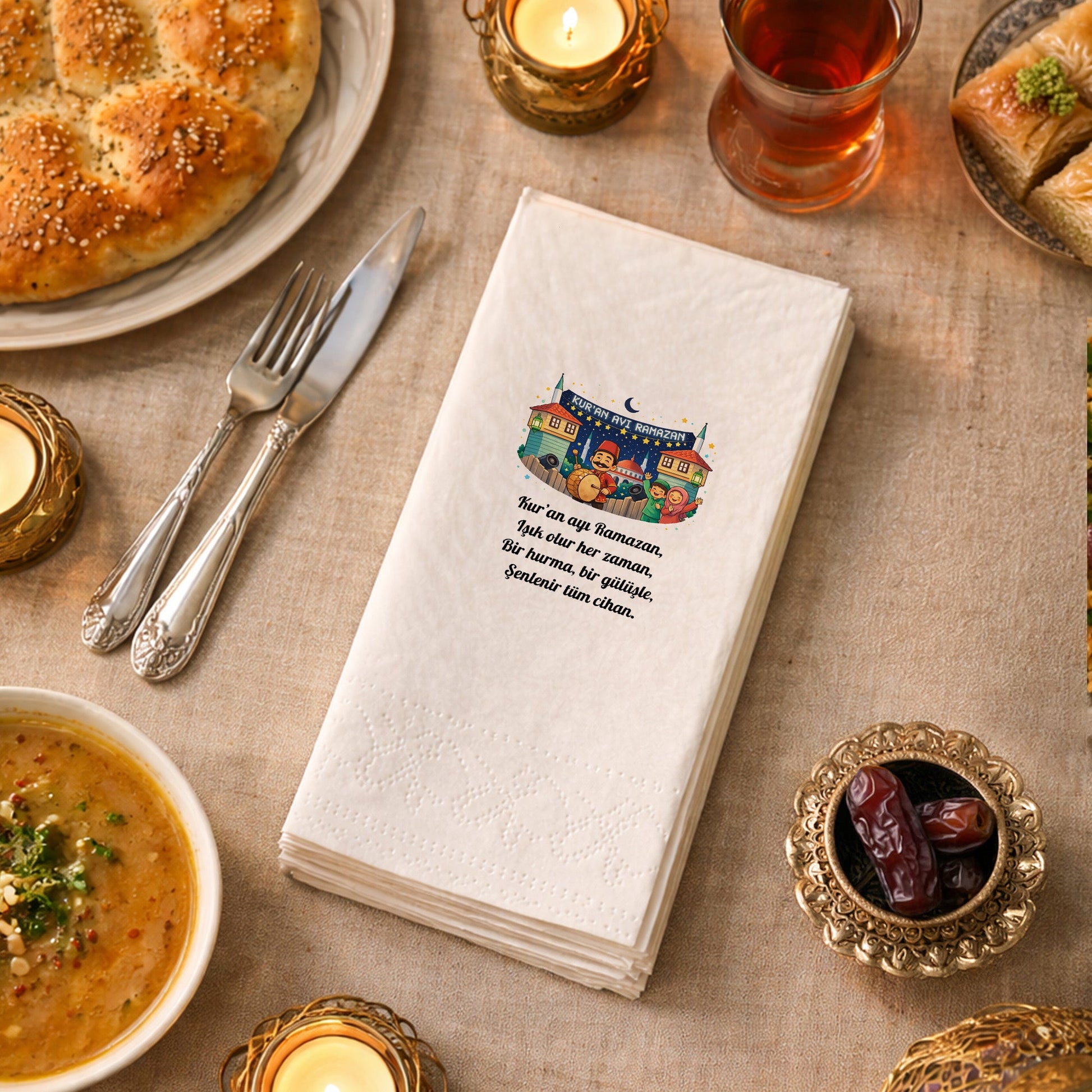 Kur’an Ayı Ramazan Baskılı Peçete – Mani & Çocuklu Ramazan Temalı | 33x33 cm