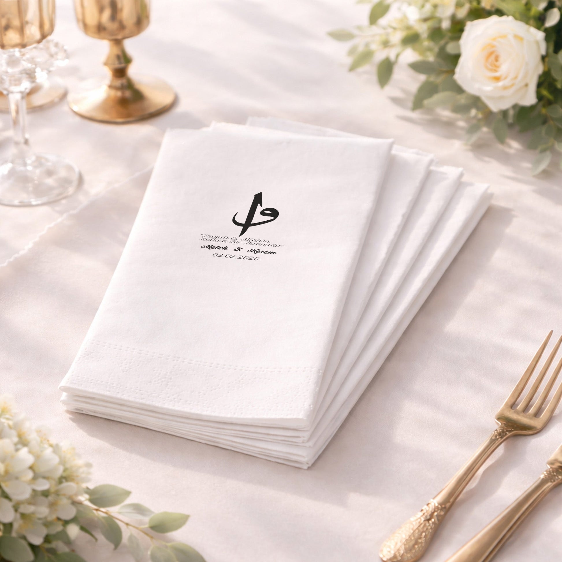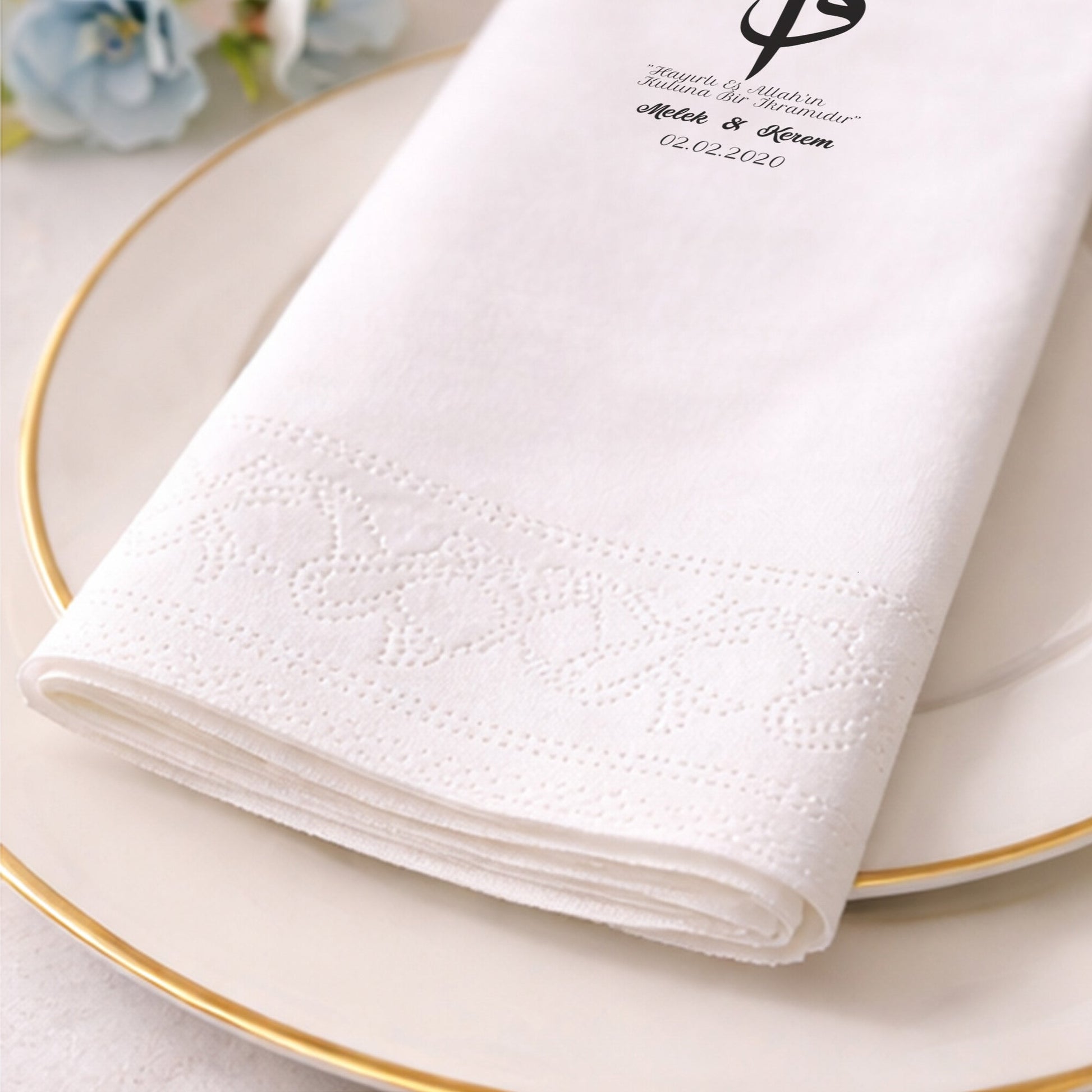 Lavanta tonlarında çelenk ve harf detaylarıyla tasarlanan bu baskılı peçete, düğün ve nişan organizasyonları için sade ve zarif bir stil sunar. Baş harf odaklı tasarım, özel gün peçetesi olarak kişisel bir kimlik kazandırır. Organizasyon peçetesi olarak masa düzenine ferah bir estetik katar. Baskılı peçete yapısı net ve dengelidir. Düğün peçetesi ve nişan peçetesi olarak kullanılabilir. Minimal, romantik ve güven veren bir konsept arayan çiftler için ideal bir üründür.
