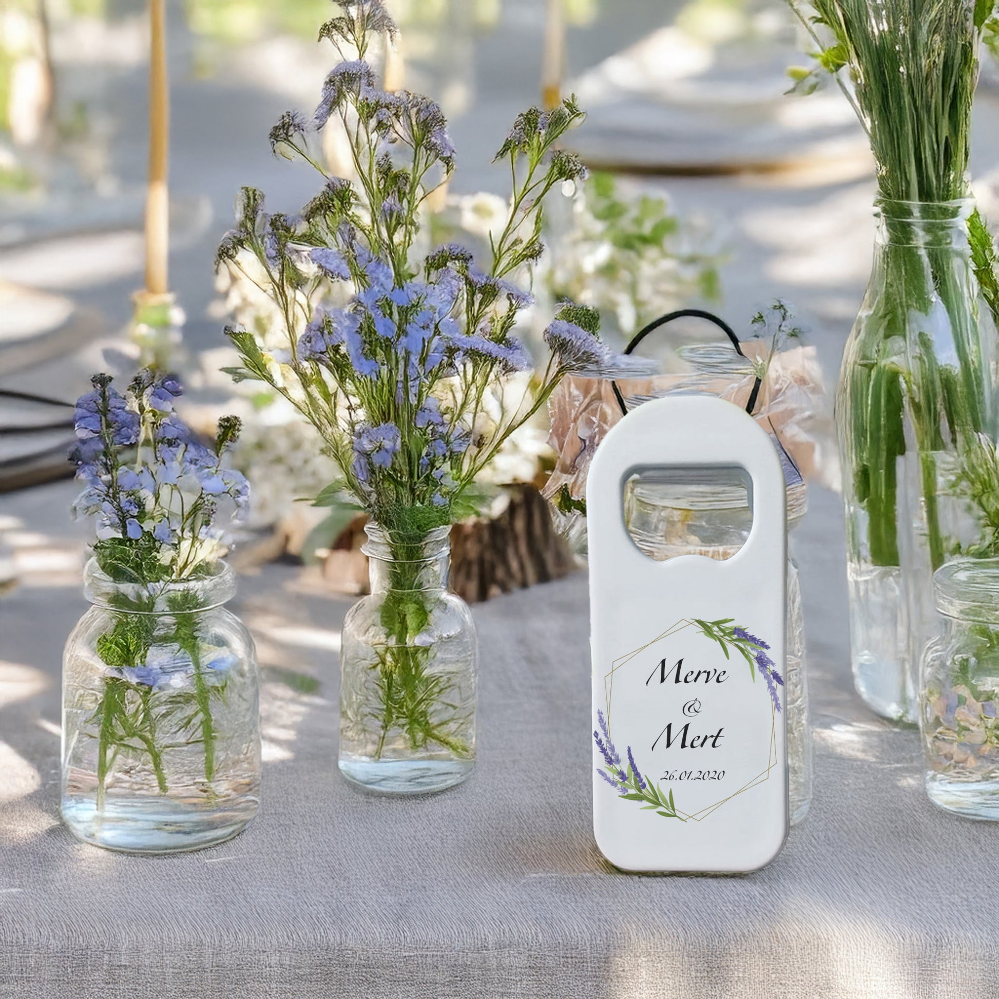 Kişiye özel desenlerimizle süslenmiş plastik açacak magnetlerimizle düğün,nişan, söz ya da kına gecenize unutulmaz bir hava katın!