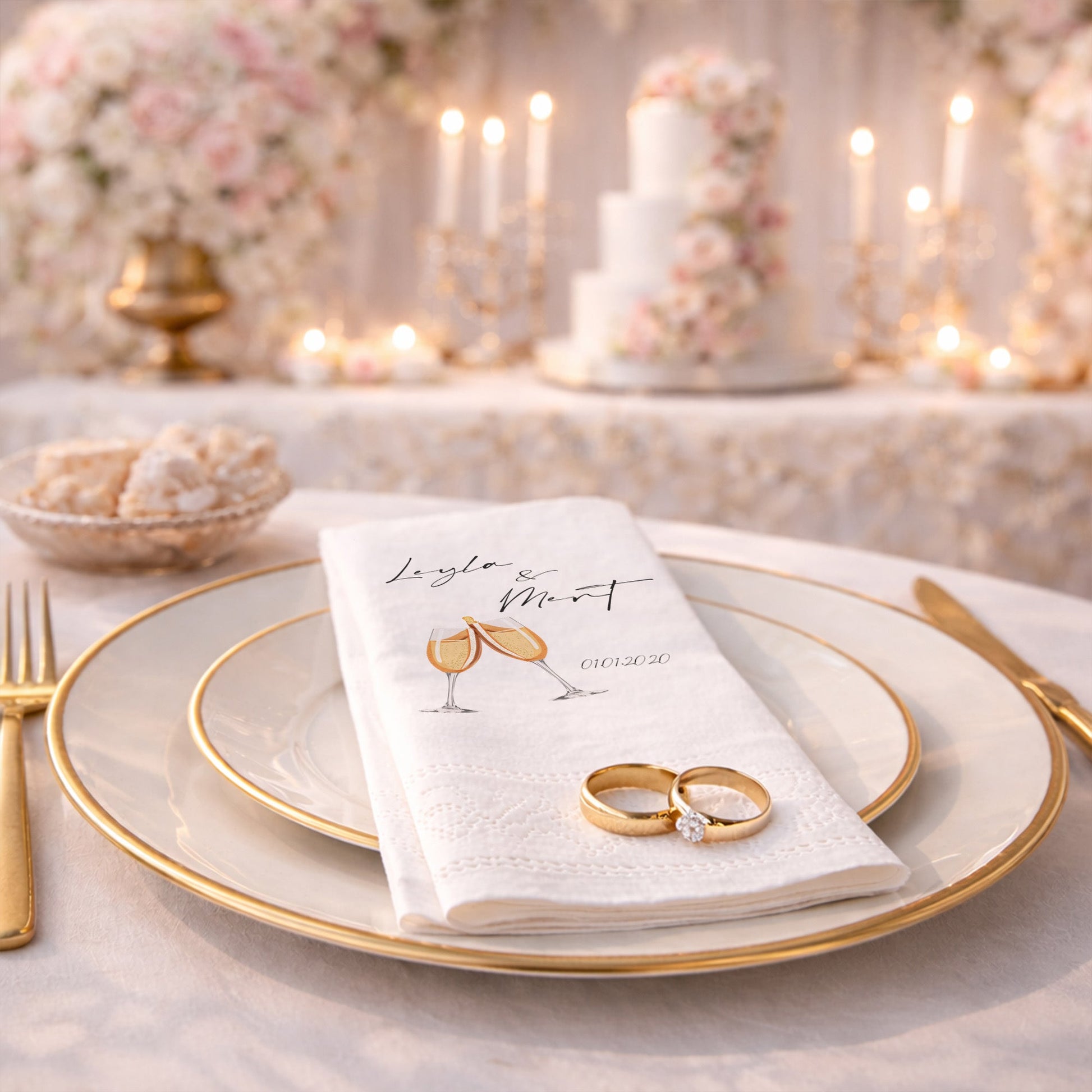 Leyla & Mert Kadeh İllüstrasyonlu Kutlama Peçetesi