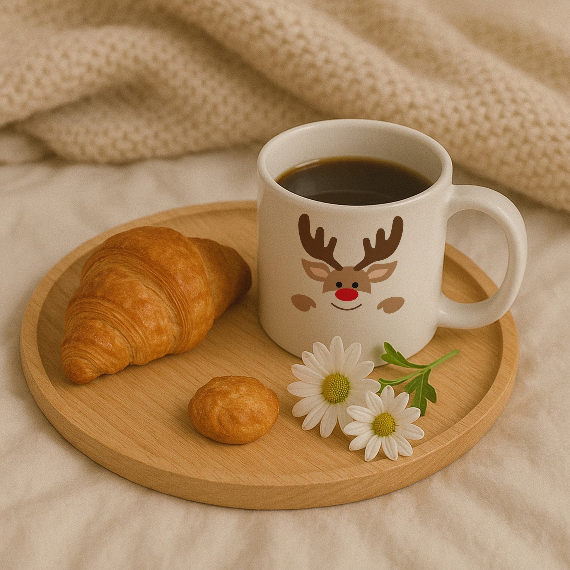 Bu tasarım kupa, yılbaşı temasını minimal bir estetikle sunar. Net hatlara sahip geyik figürü, sade renk paleti ve dengeli kompozisyonu sayesinde zamansız bir görünüm oluşturur.