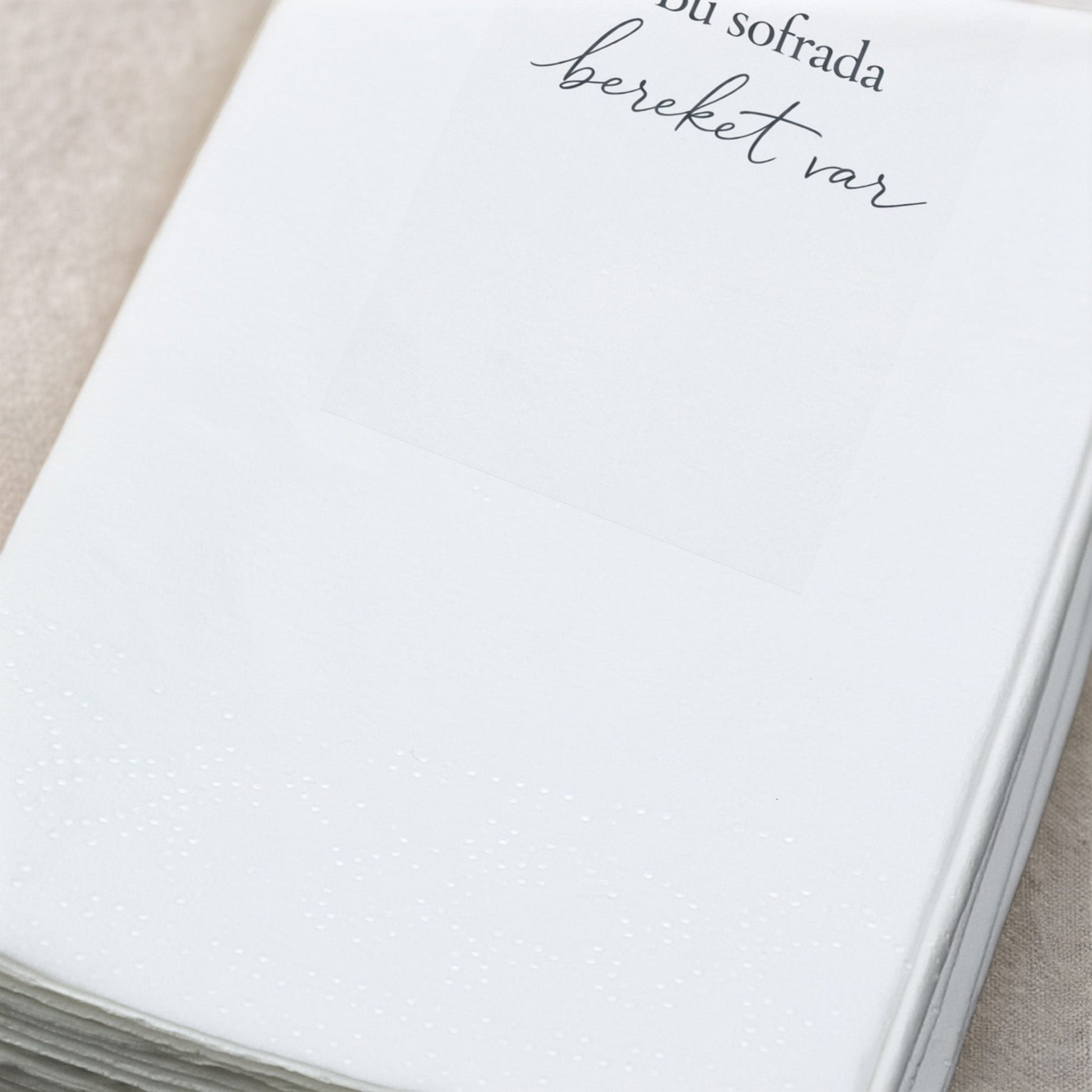 Ramazan sofralarına sade şıklık ve anlam katmak için tasarlanan bu özel Ramazan Desenli Baskılı Peçete, minimal Ramazan feneri çizimi ve