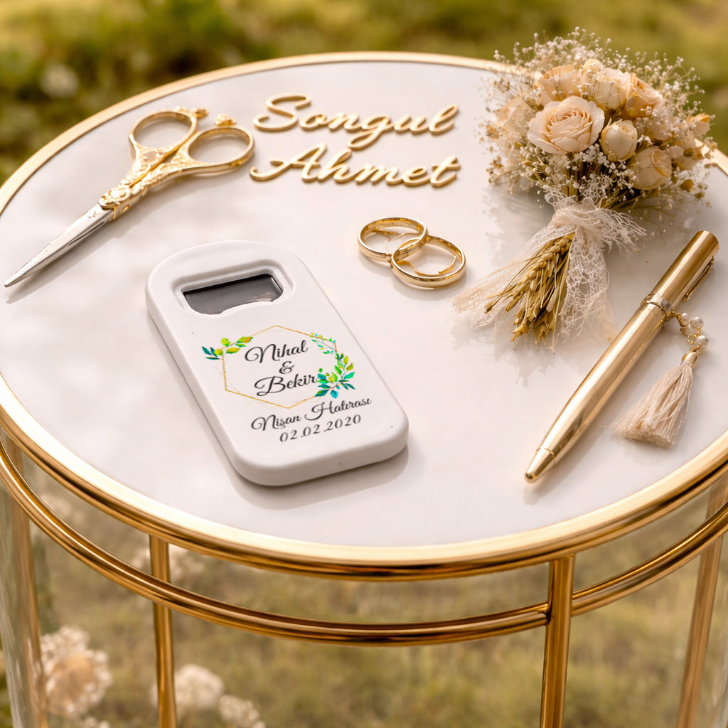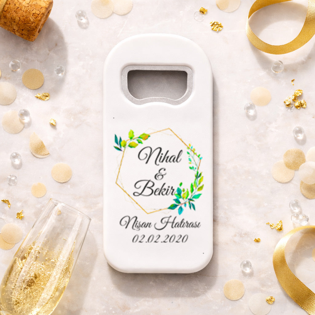 Kişiye özel isim ve tarih detayı ile hazırlanan bu ürün, 45x100 mm ölçülerinde olup hem estetik hem de kullanışlıdır. Dayanıklı plastik gövdesi sayesinde uzun süreli kullanım sunar. Üst kısmında yer alan metal açacak, pratik kullanım sağlarken arka yüzeyindeki güçlü mıknatıs sayesinde buzdolabı gibi yüzeylere kolayca tutunur.