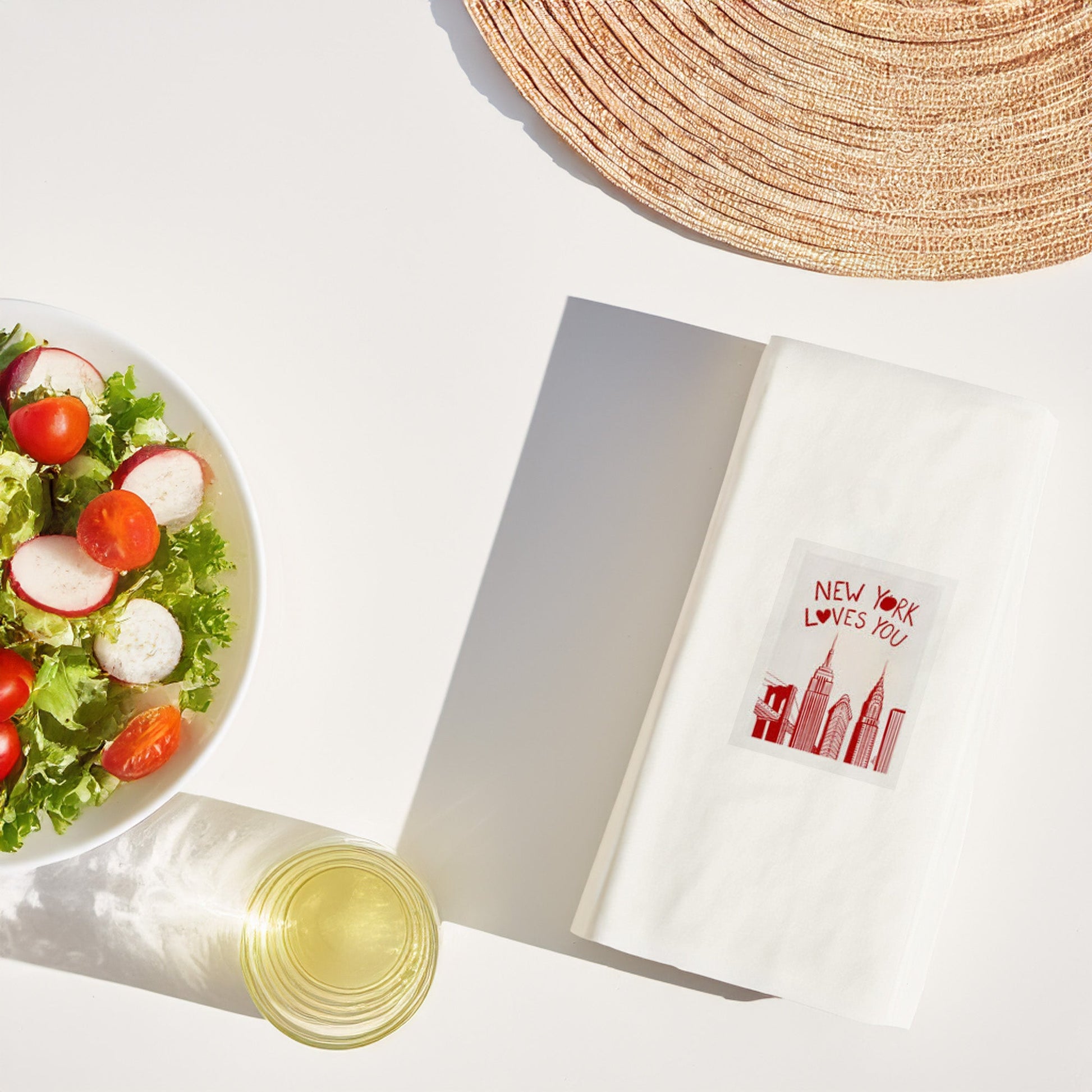 New York temalı bu özel tasarım peçete, sofralarda şehir aşkını ve modern estetiği bir araya getirir.