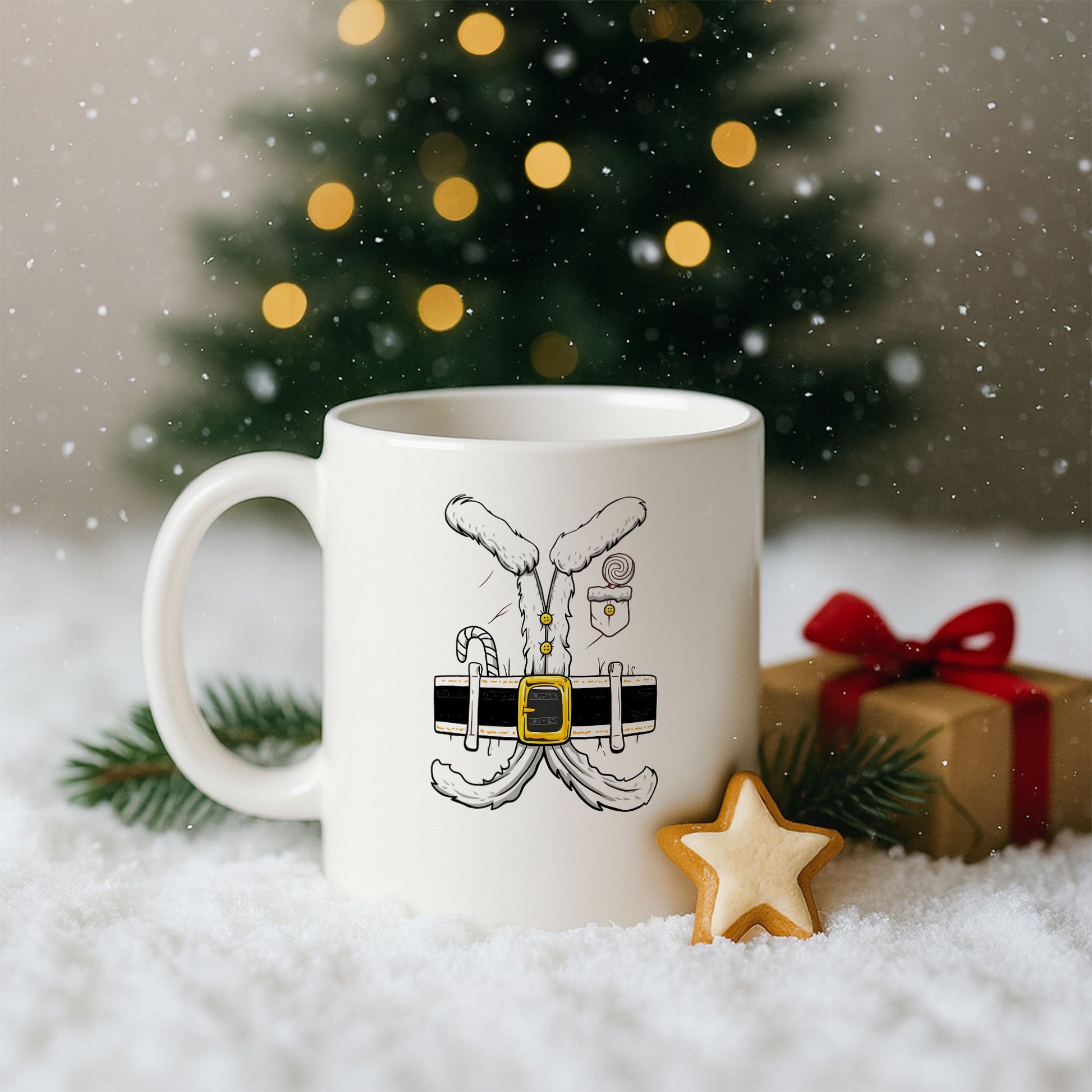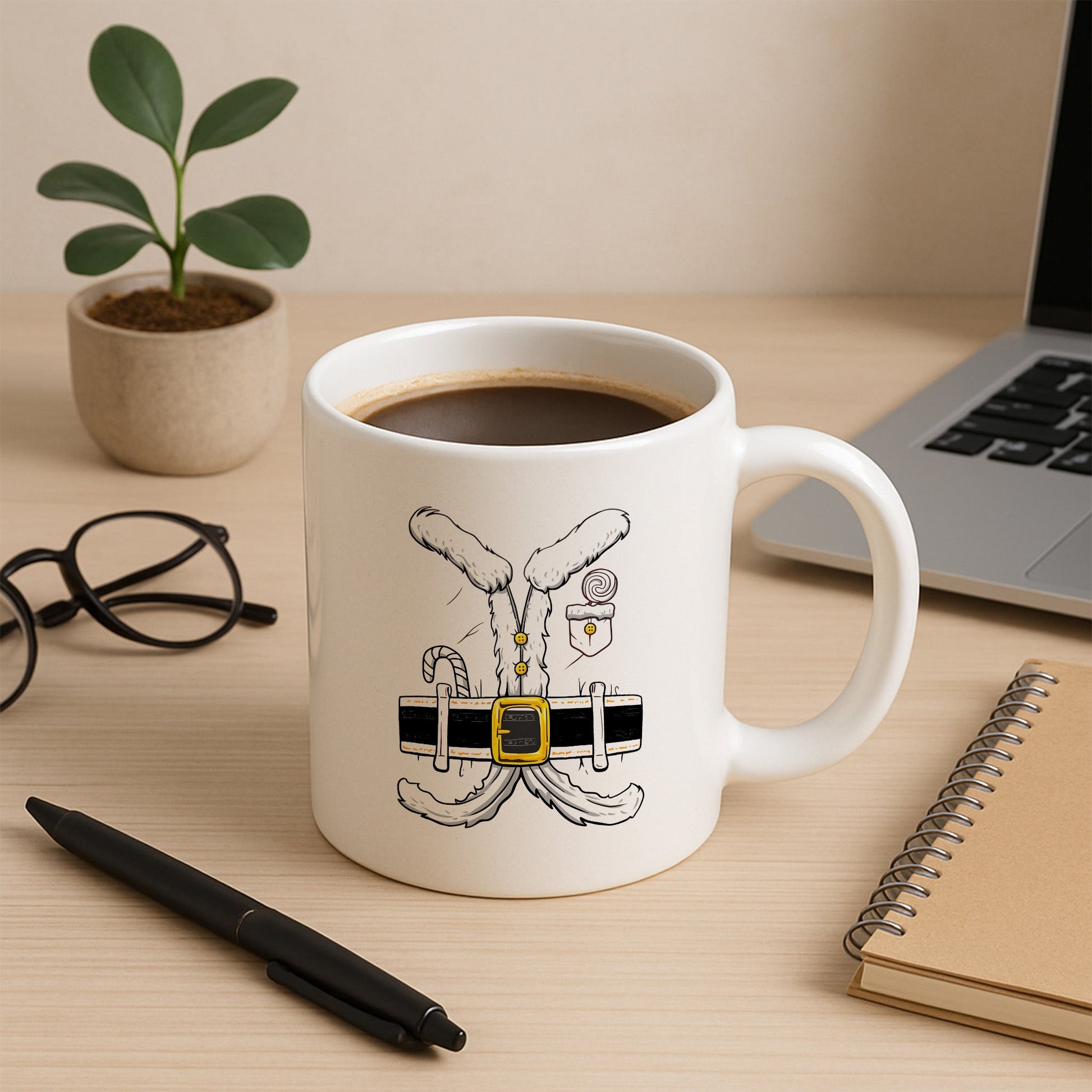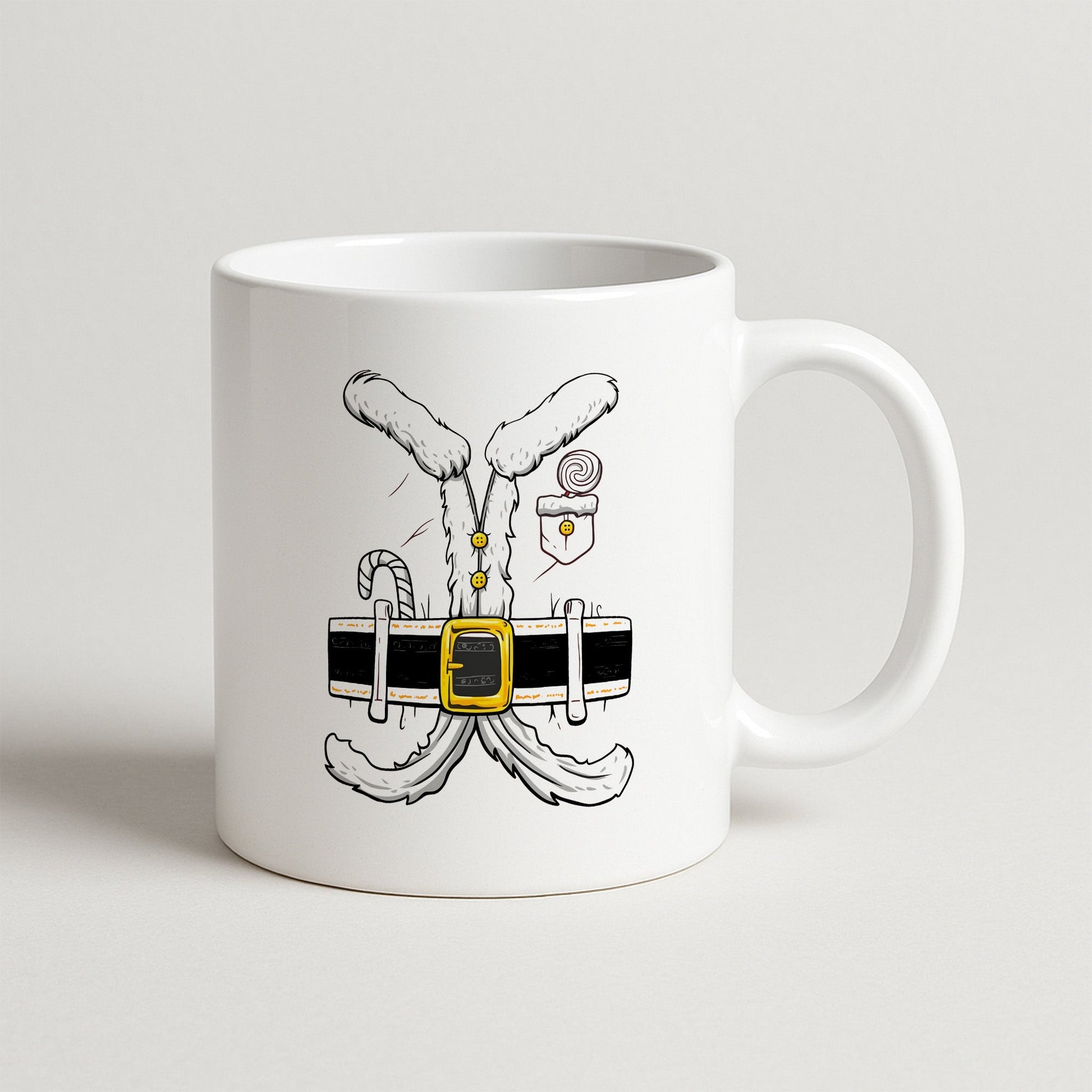 Kürklü kıyafet detayıyla tasarlanmış, esprili ama sade yılbaşı temalı özel kupa modeli.