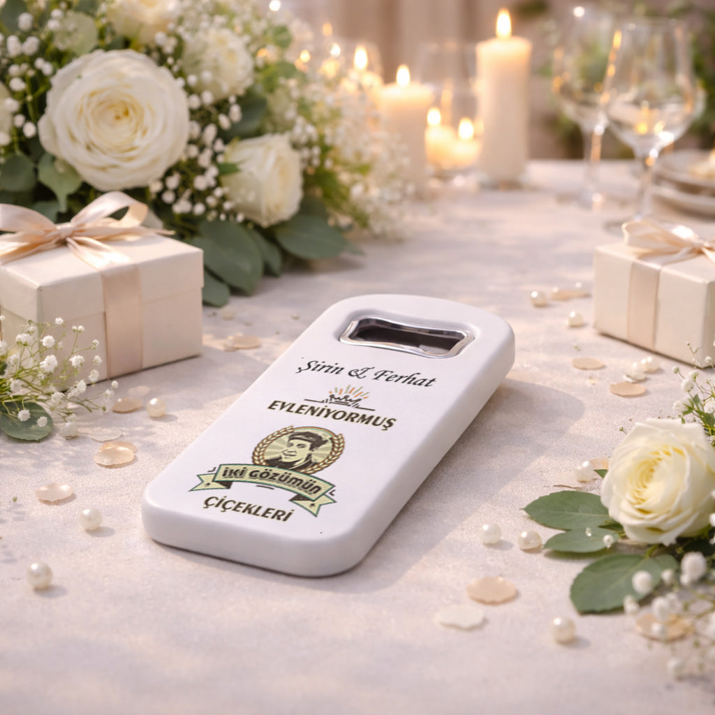 Hem şişe açacağı hem de magnet olarak kullanılan, UV baskı ile kişiselleştirilebilen çok amaçlı bir üründür.