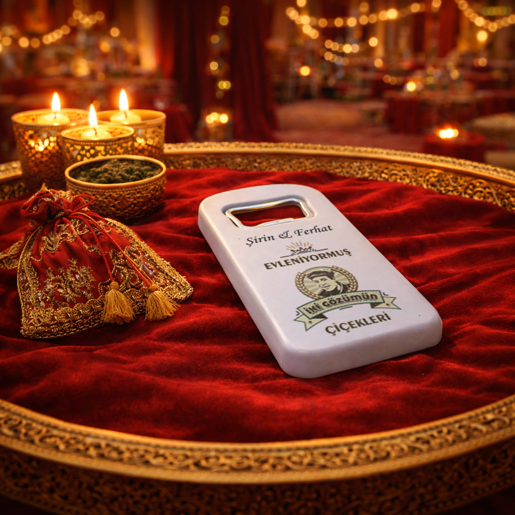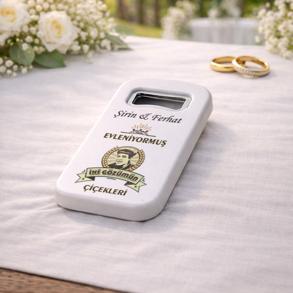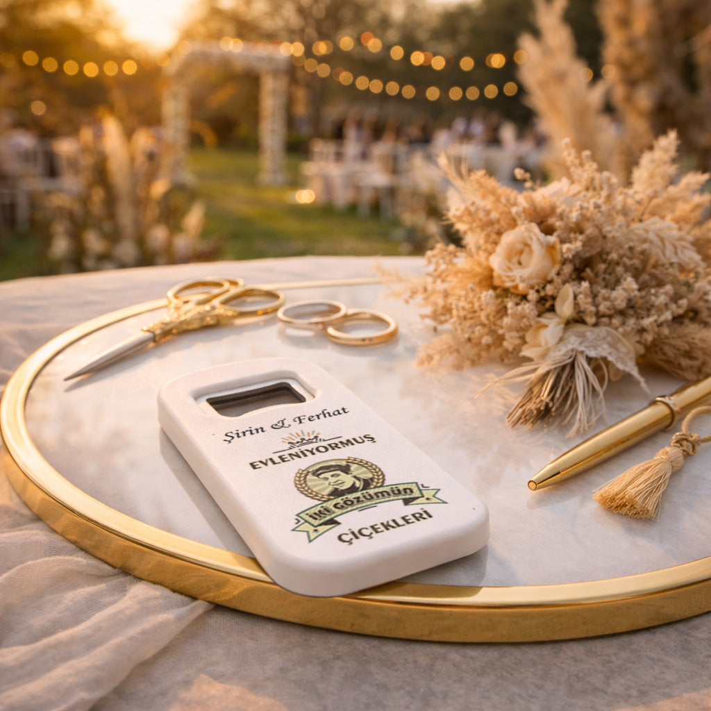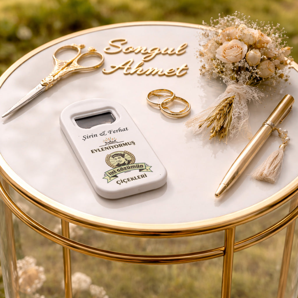Nostaljik Yazılı Düğün Magnet Açacak | İki Gözümün Çiçekleri Tasarım