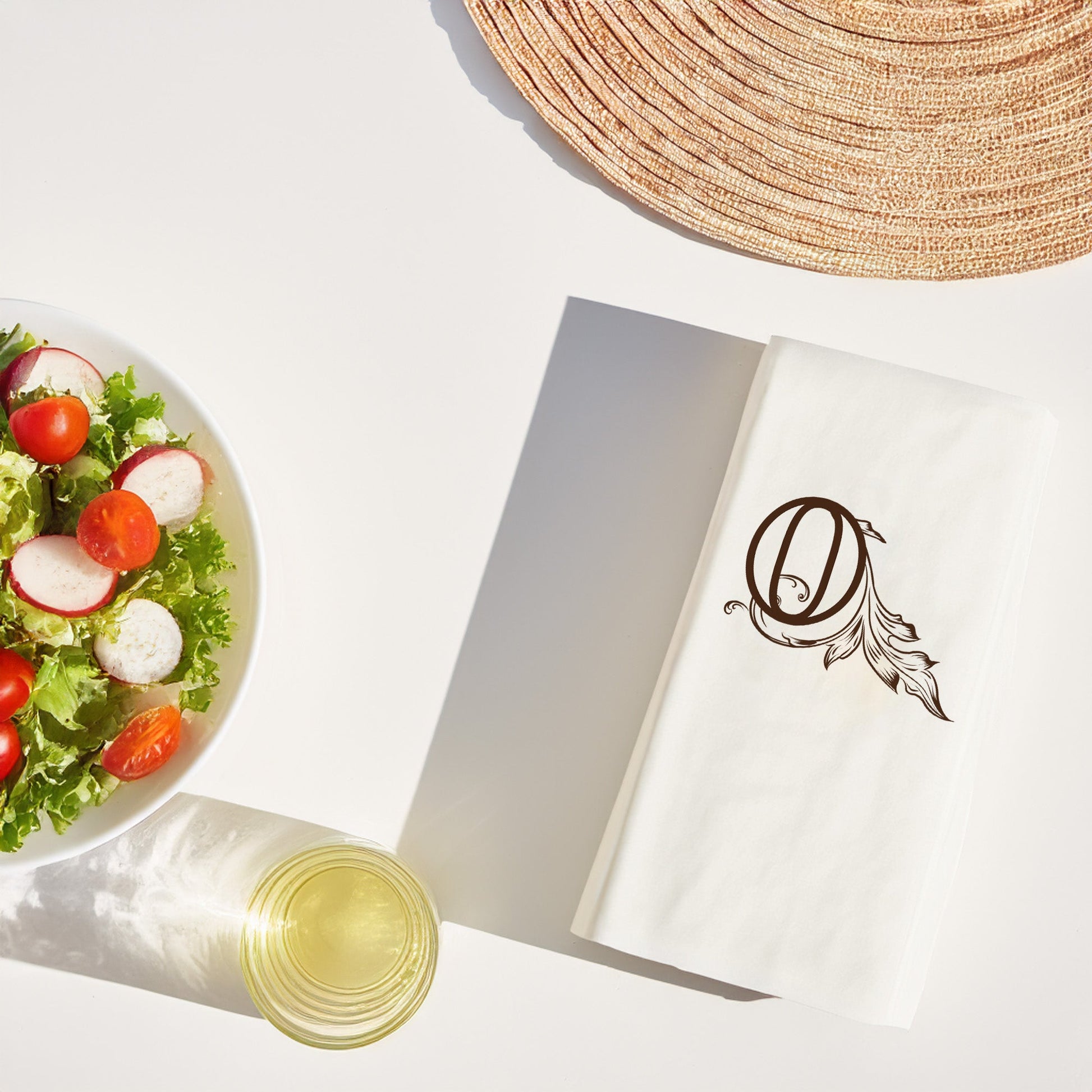 O Harfi Monogram Desenli Baskılı Peçete – 20’li Premium Selülozik Beyaz Peçete (33x33 cm, Garson Katlama)