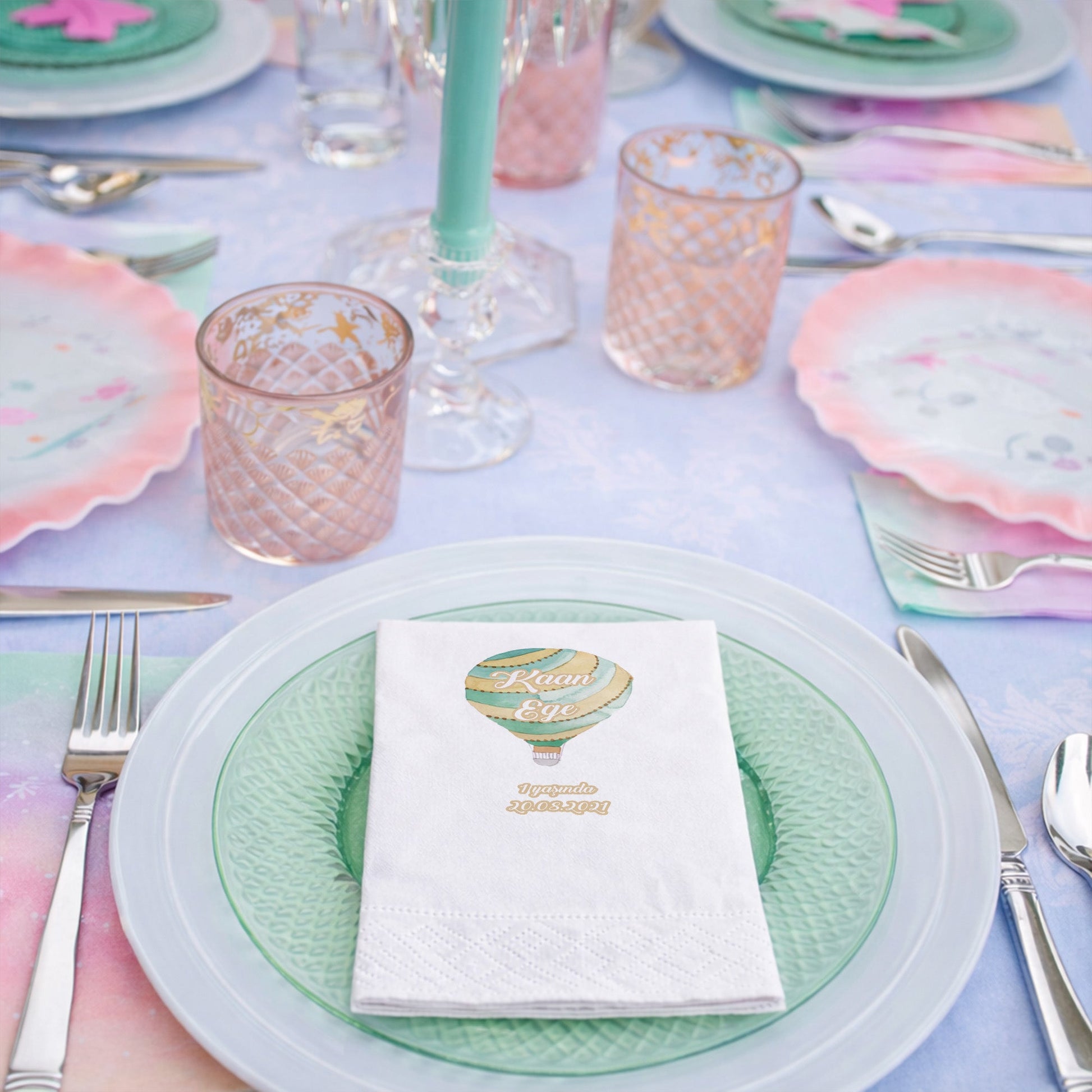 Kaan Ege Pastel Yeşil Bohem Sıcak Hava Balonu Temalı Peçete